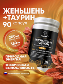 Женьшень таурин экстракт в капсулах 90 капсул 550 мг, ГрибNik