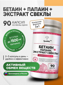 Бетаин гидрохлорид + папаин, экстракт свеклы 90 капсул, ГрибNik