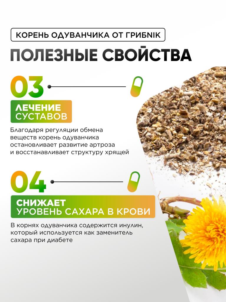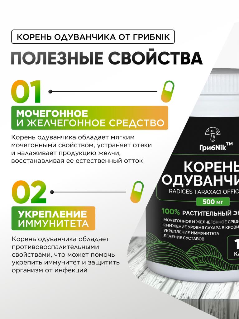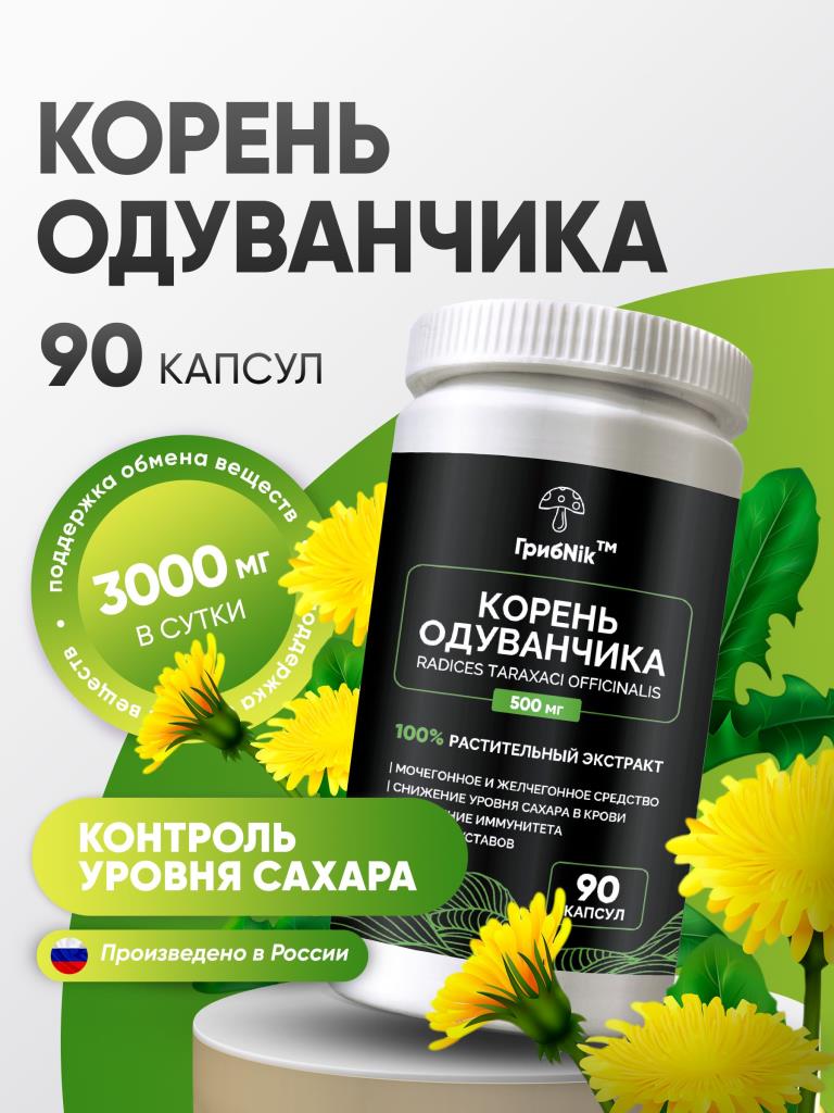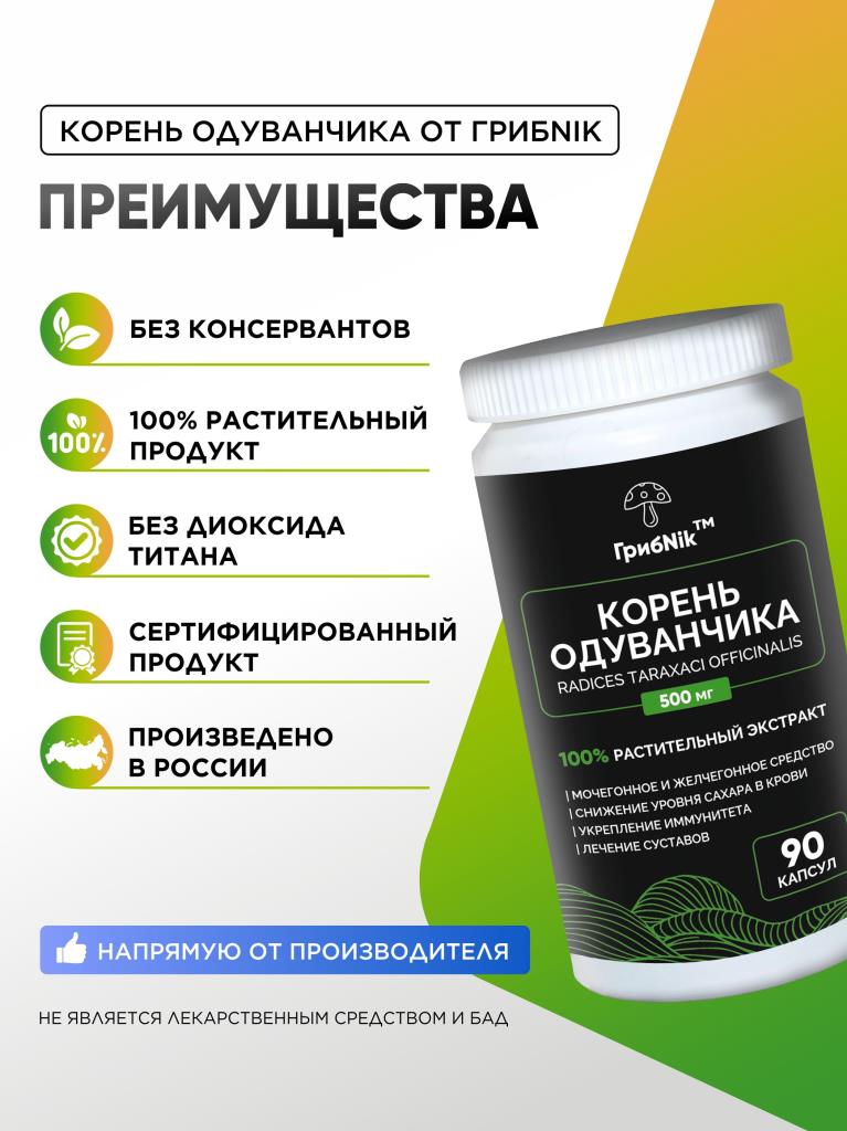 Корень одуванчика от отеков, очищение организма, детокс, для суставов, противовоспалительное, от псориаза 90 капсул 500 мг, ГрибNik