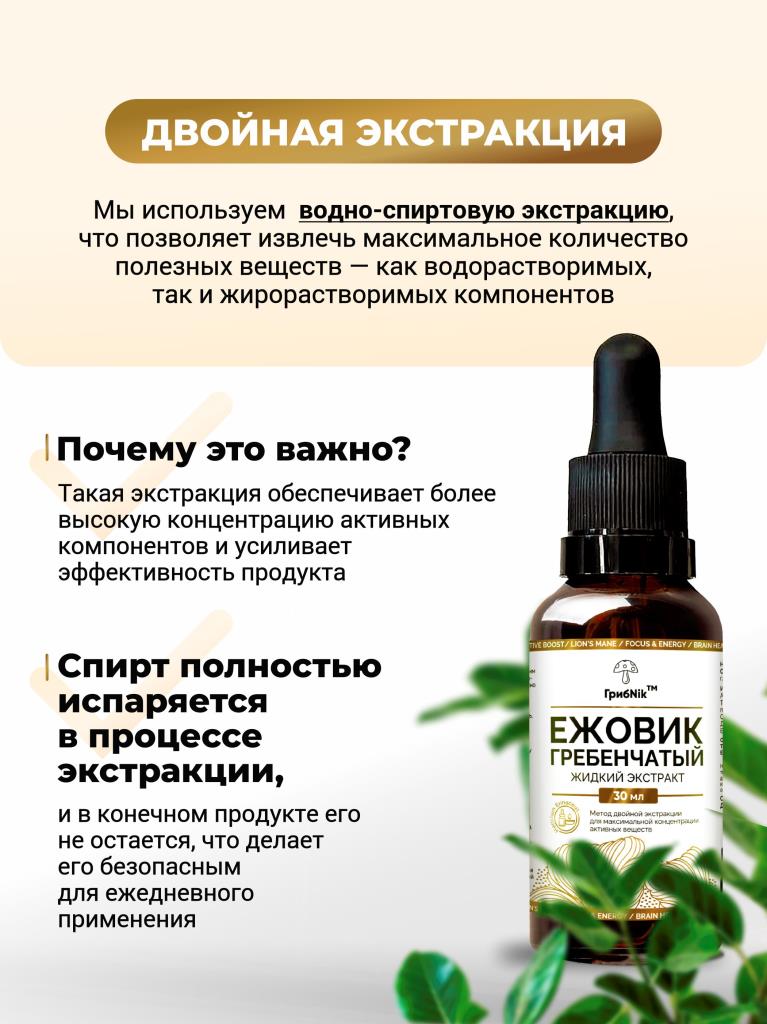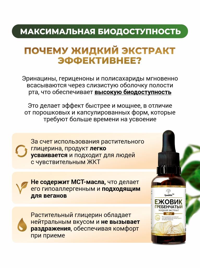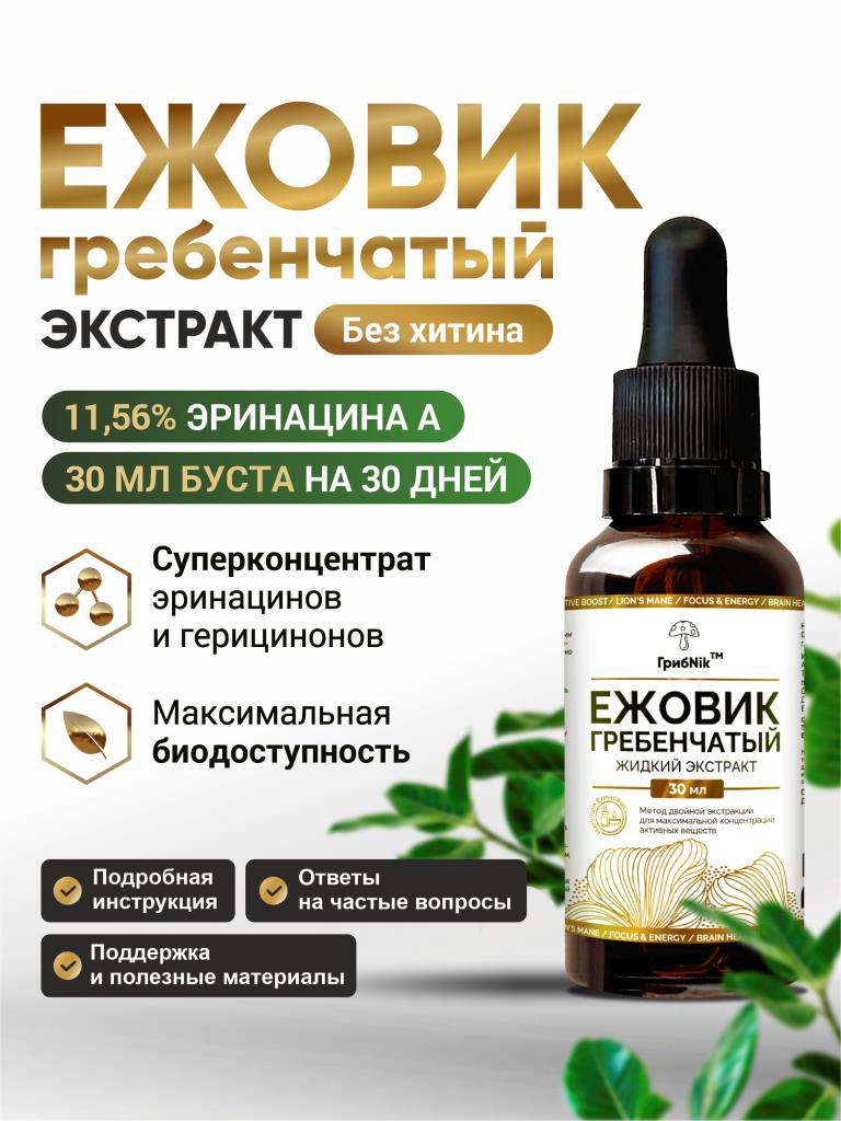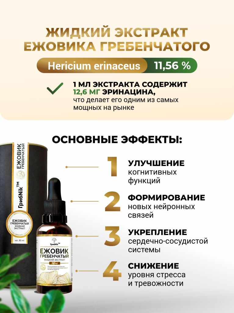 Жидкий экстракт Ежовик гребенчатый, 30 мл, Lions mane, природный ноотроп