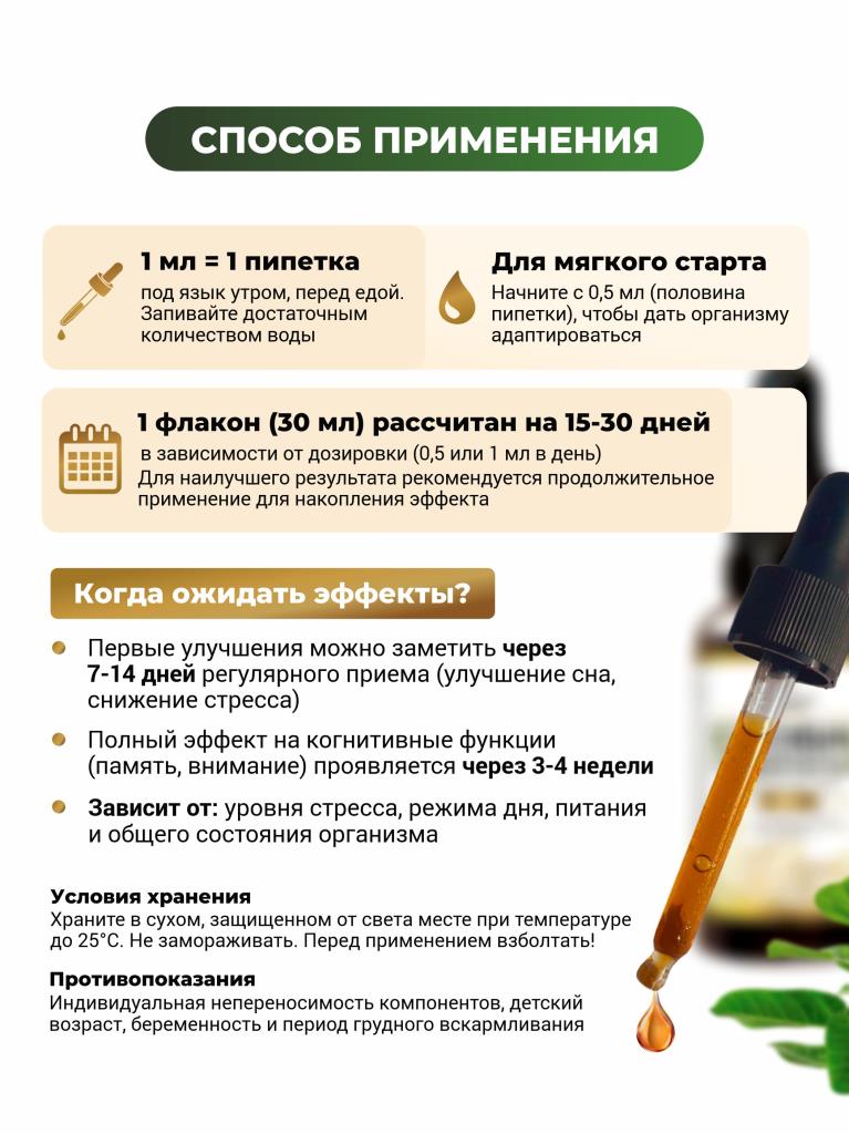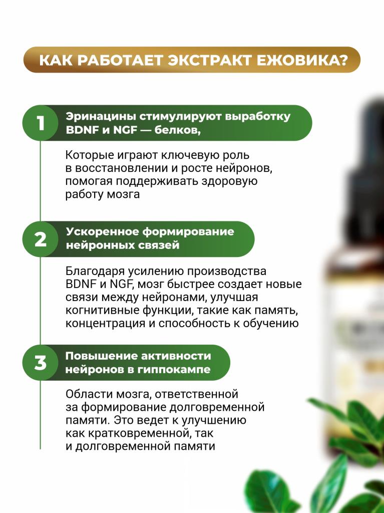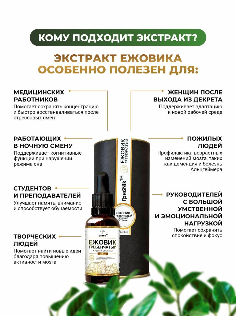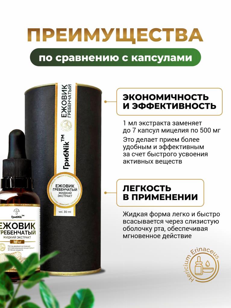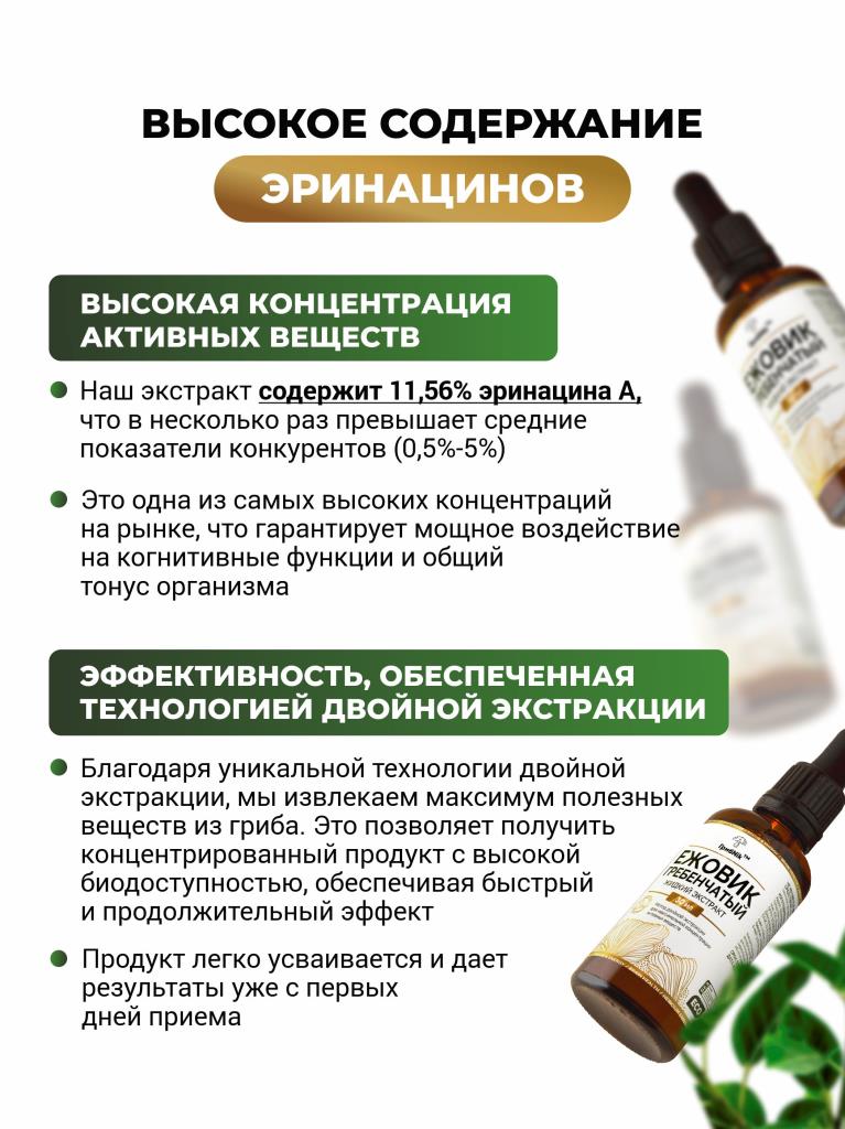 Жидкий экстракт Ежовик гребенчатый, 30 мл, Lions mane, природный ноотроп