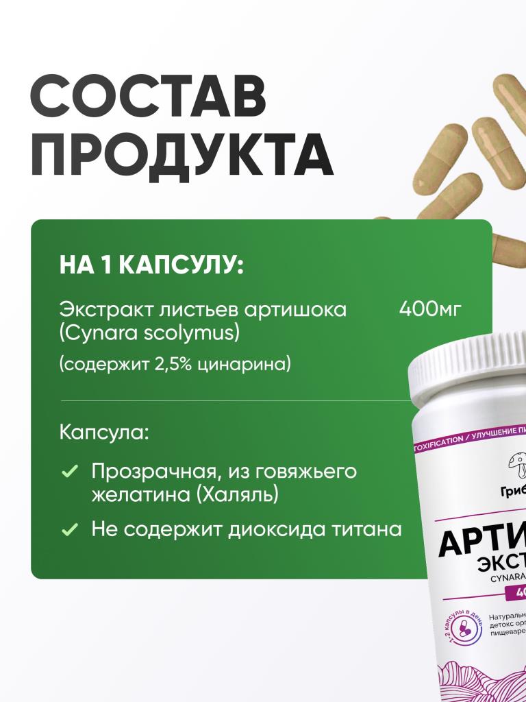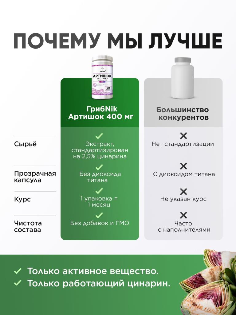 Артишок в капсулах, Артишок экстракт 90 капсул от ГрибNik