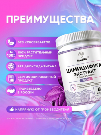 Экстракт цимицифуги ГрибNik, 60 капсул 200 мг, для гормонального баланса, климакса и ПМС.