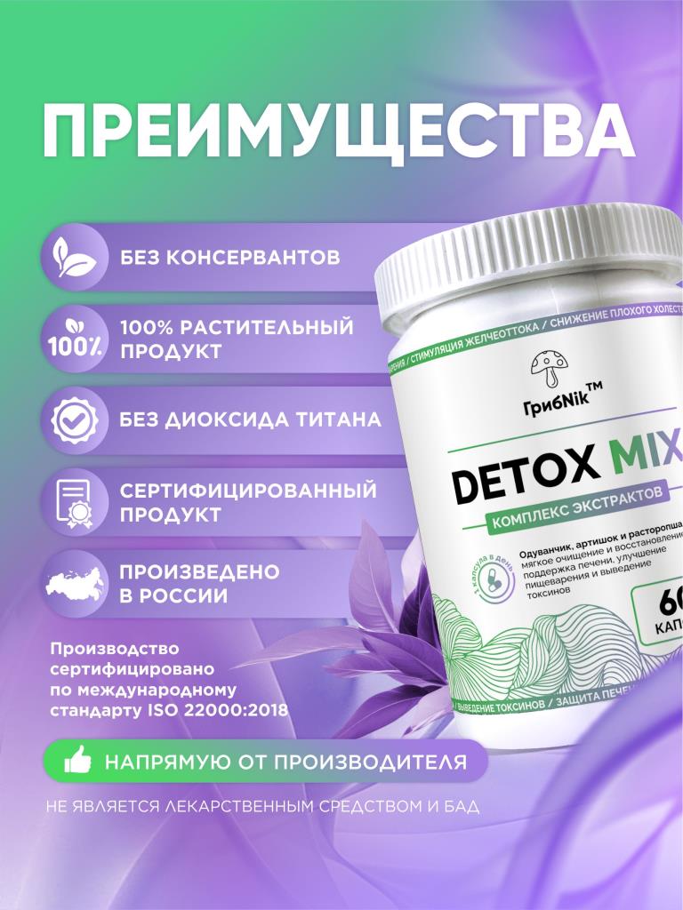 Детокс комплекс/ Артишок, Расторопша, Одуванчик 60 капсул, ГрибNik