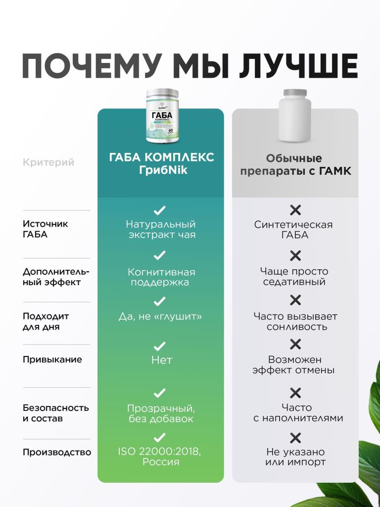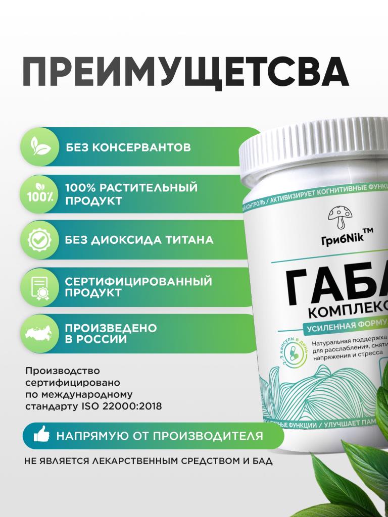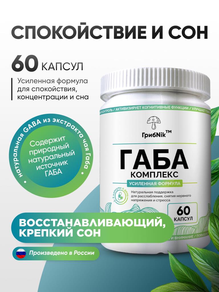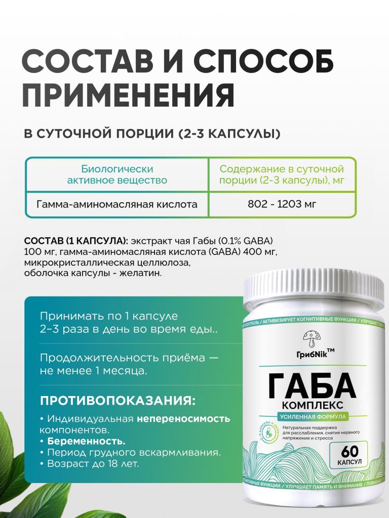 Габа, gaba, гамк 60 капсул, ГрибNik