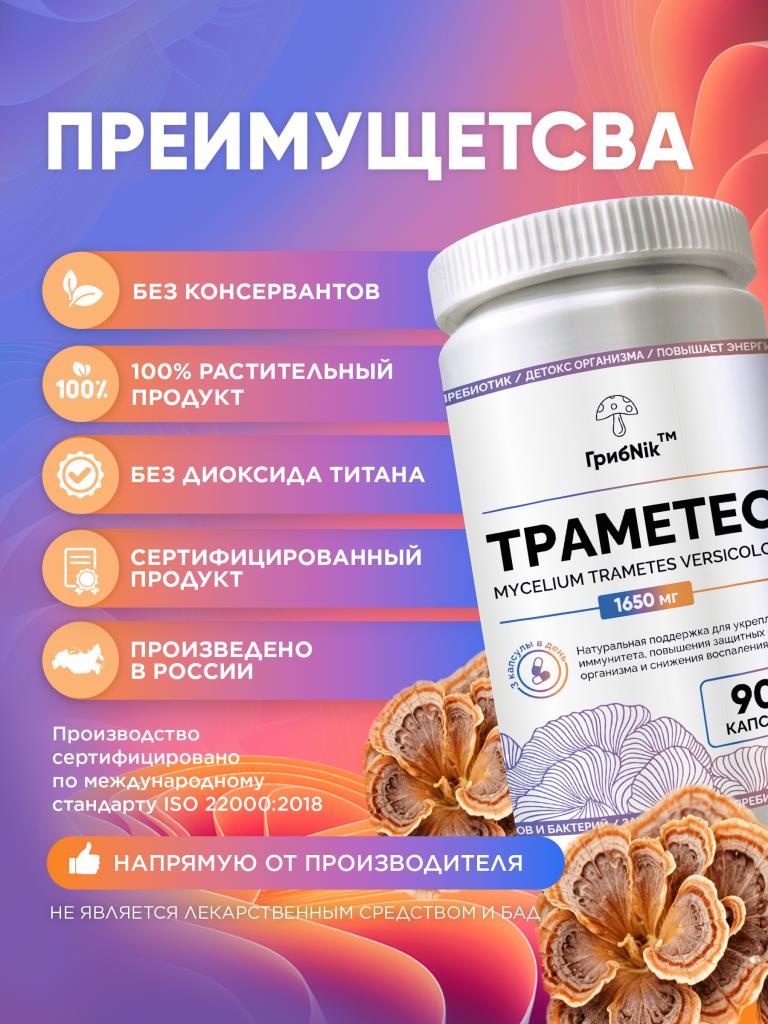 Траметес разноцветный мицелий 90 капсул, ГрибNik