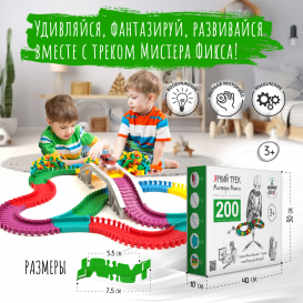 Гоночный автотрек с машинкой, 200 деталей, Яркий трек Мистера Фикса