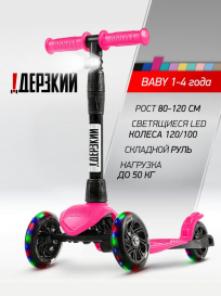 !Дерзкий Самокат детский трехколесный BABY Старт с фонариком 1-4 года, розовый