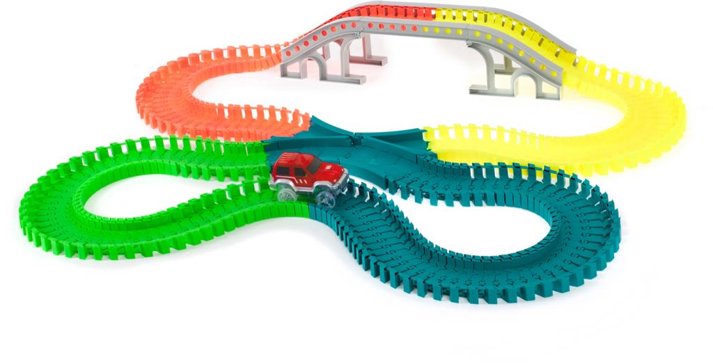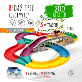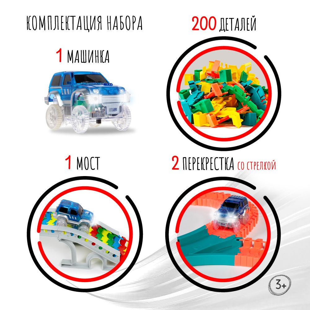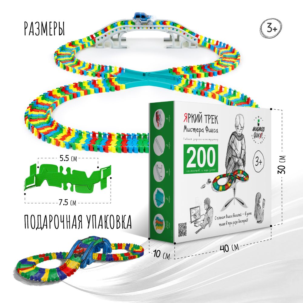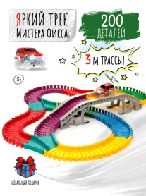 Гоночный автотрек с машинкой, 200 деталей, Яркий трек Мистера Фикса