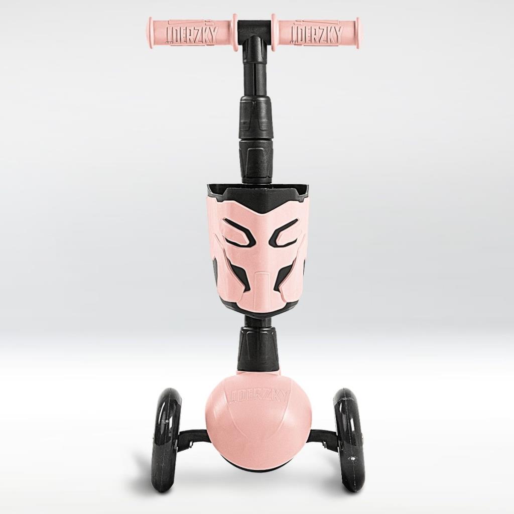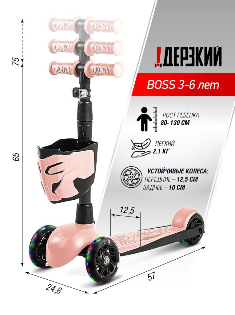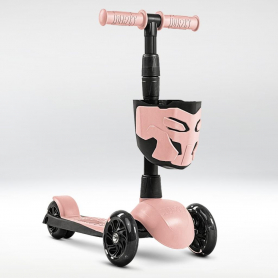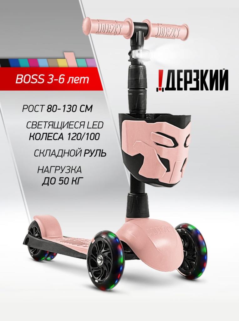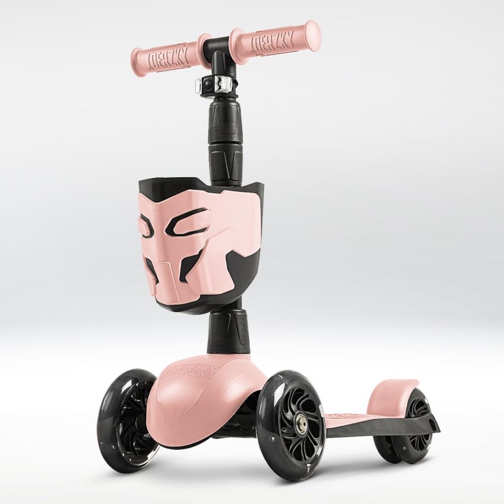 !Дерзкий Самокат трехколесный детский, светящиеся колеса с корзинкой и фонариком., светло-розовый
