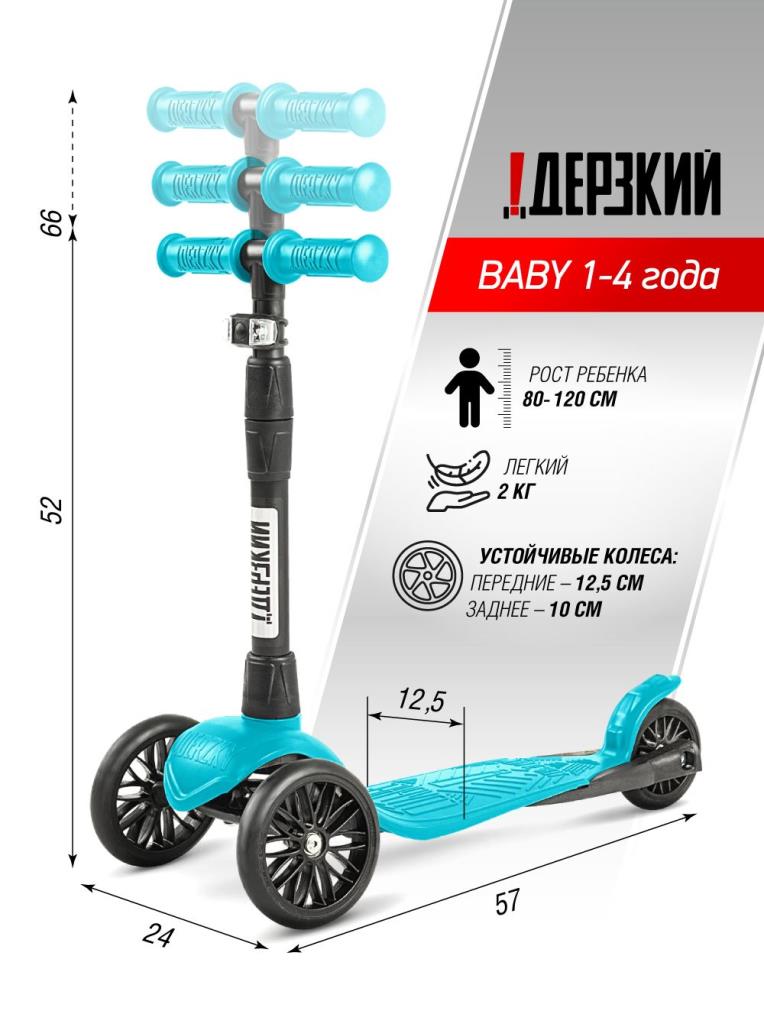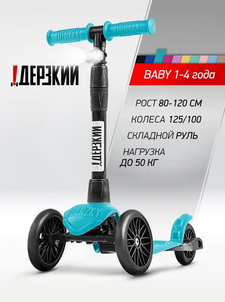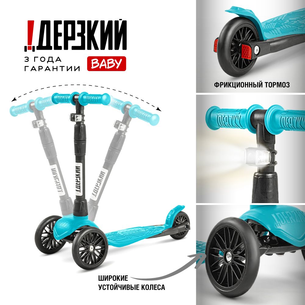 !Дерзкий Самокат детский трехколесный BABY Старт с фонариком 1-4 года, бирюзовый