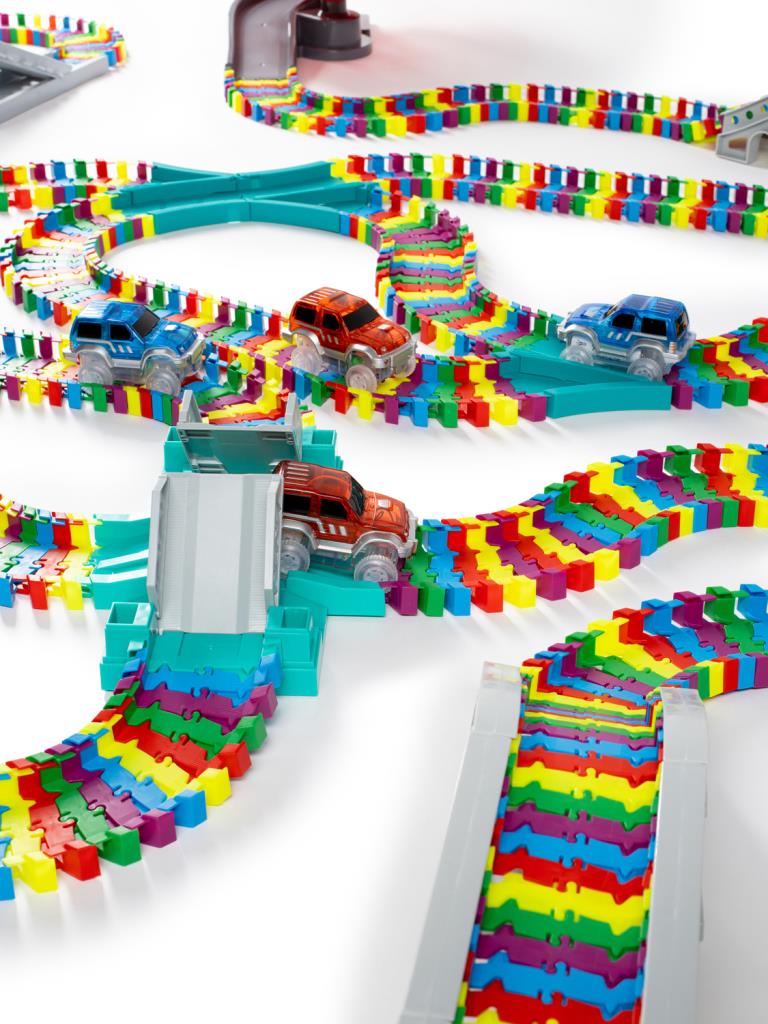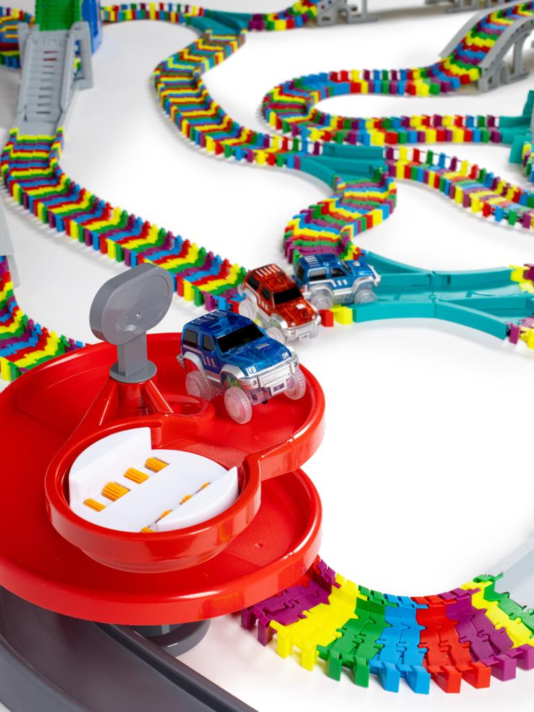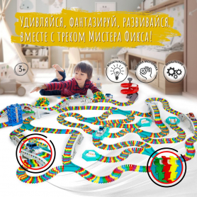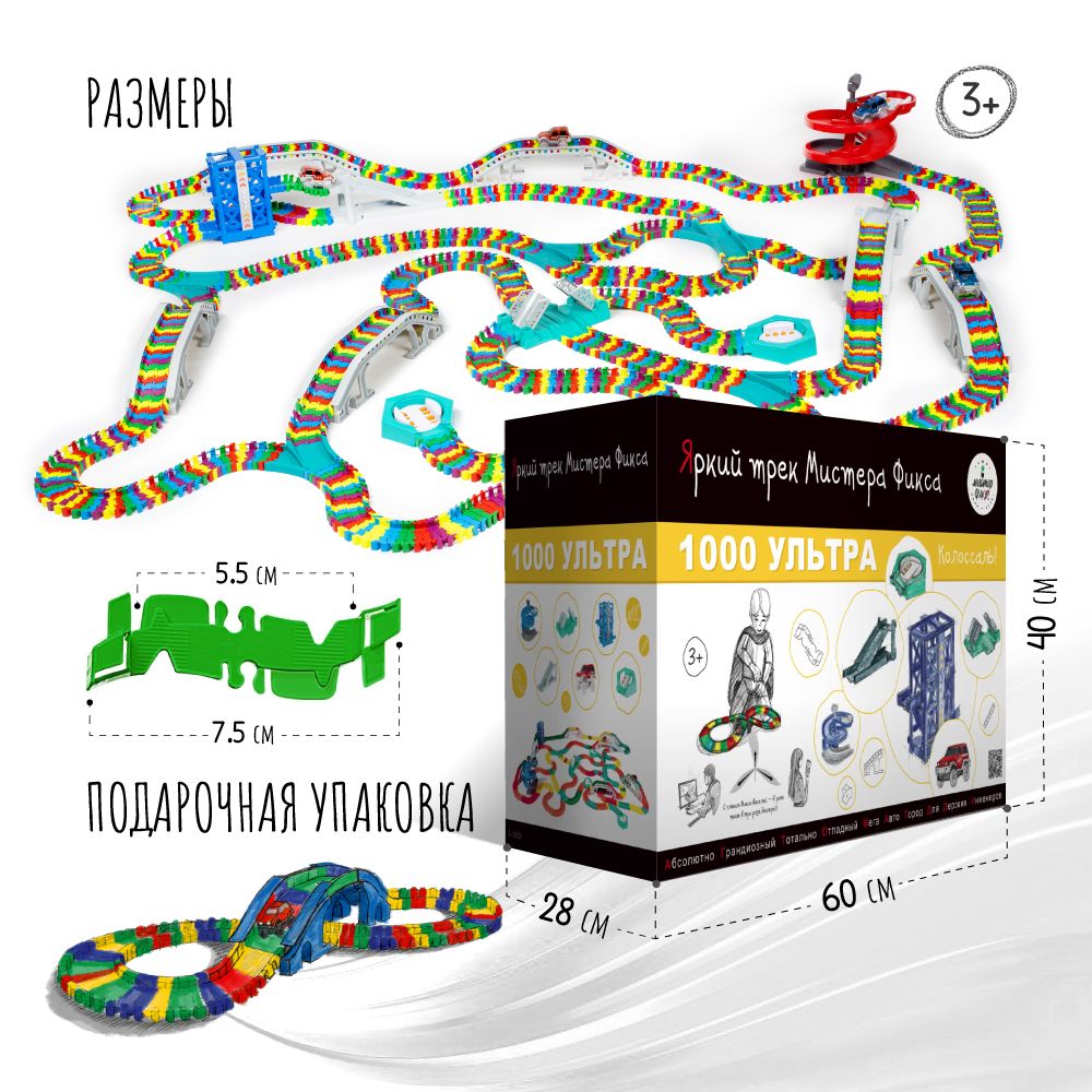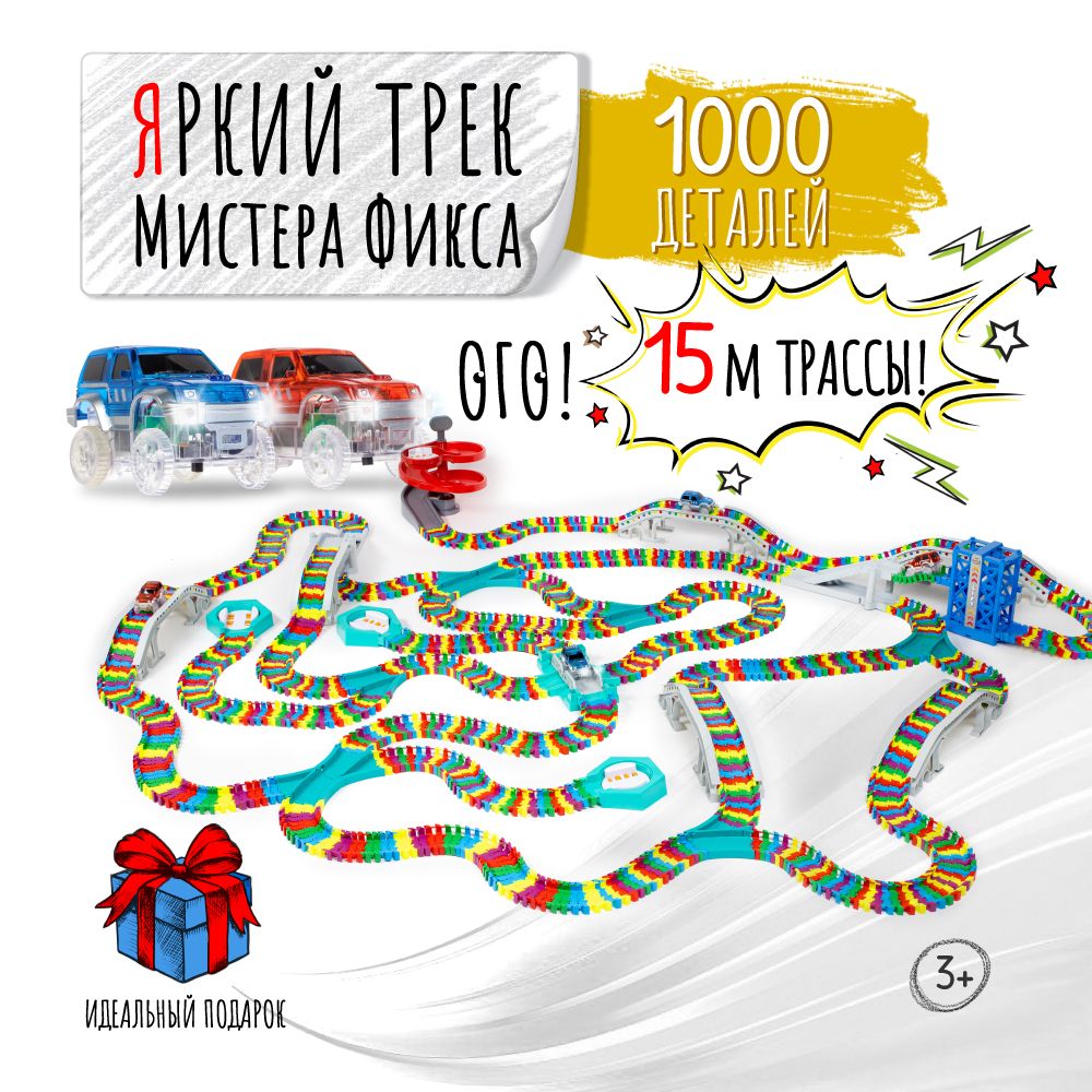 Автотрек с машинками, гибкий гоночный трек 1000 деталей, Яркий трек Мистера Фикса
