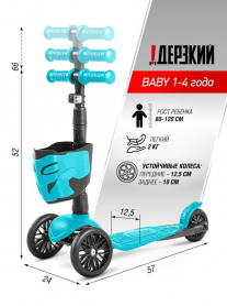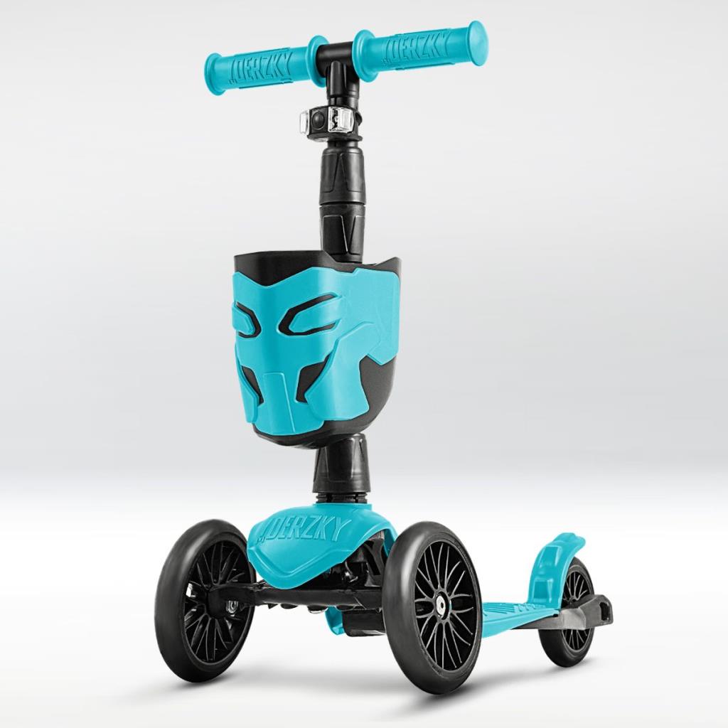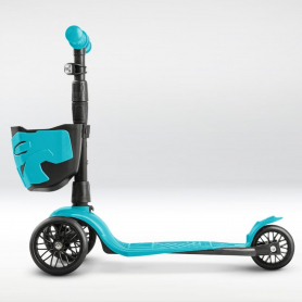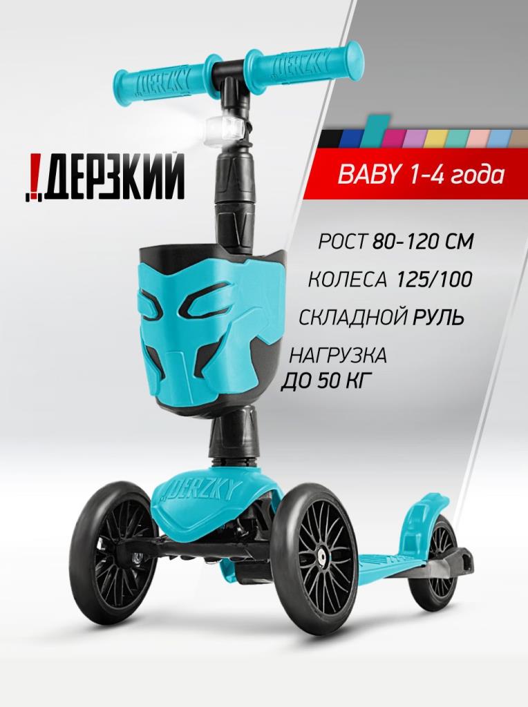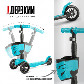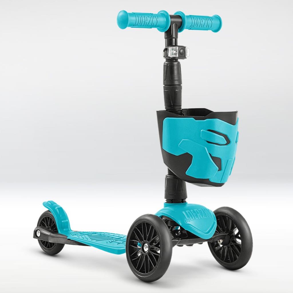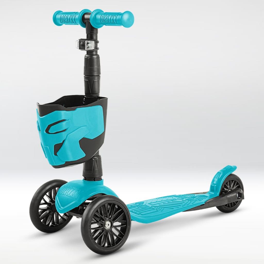 !Дерзкий Самокат трехколесный детский с корзинкой и фонариком, бирюзовый