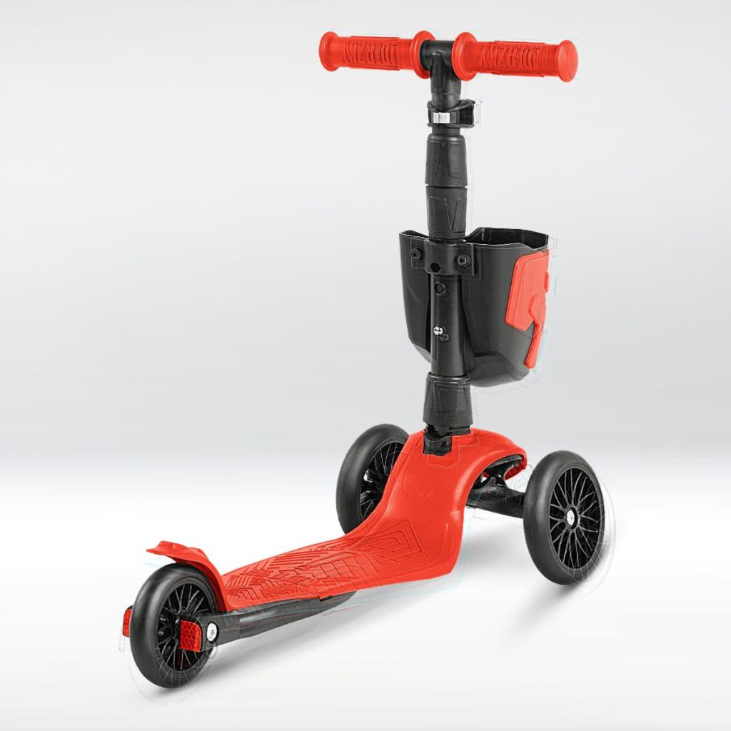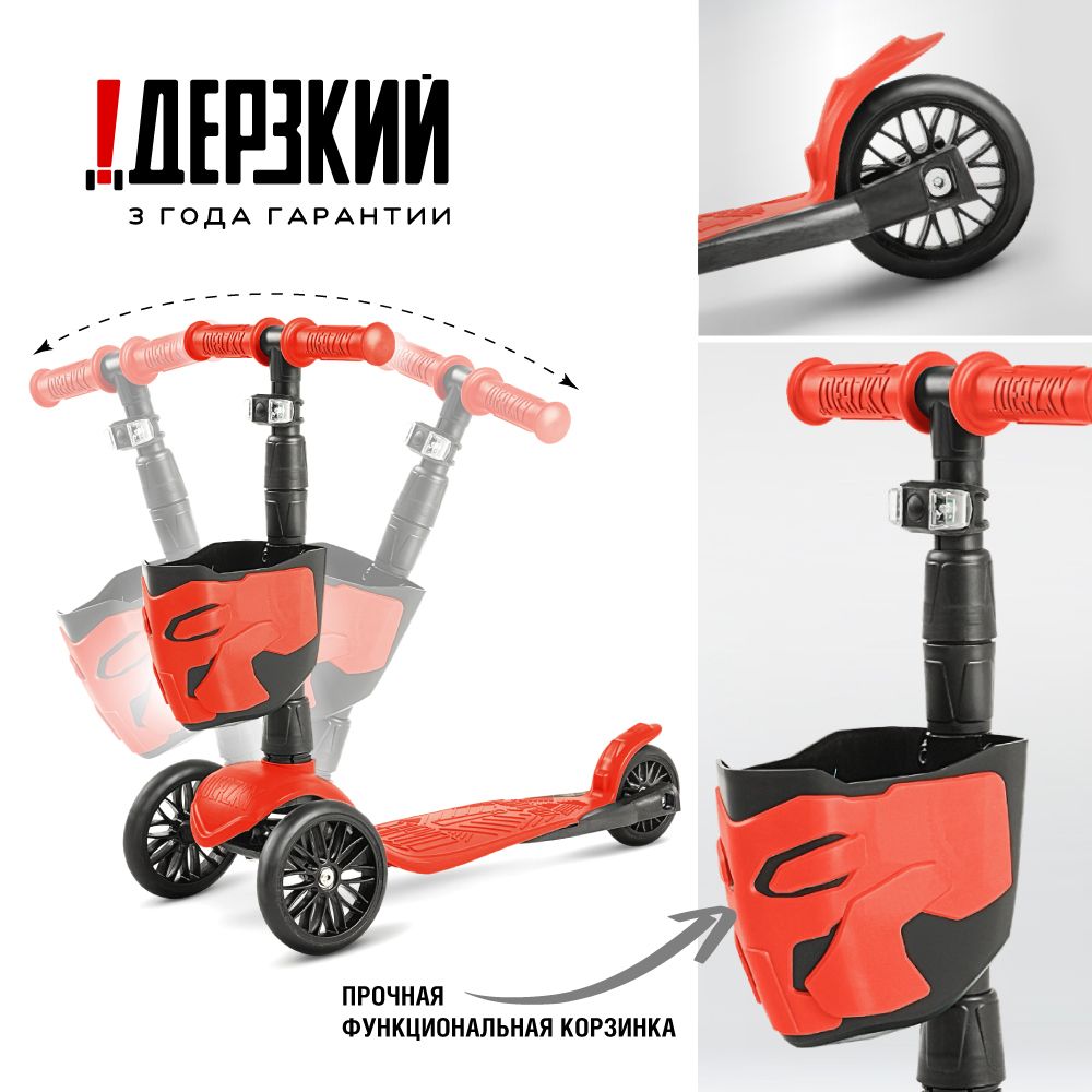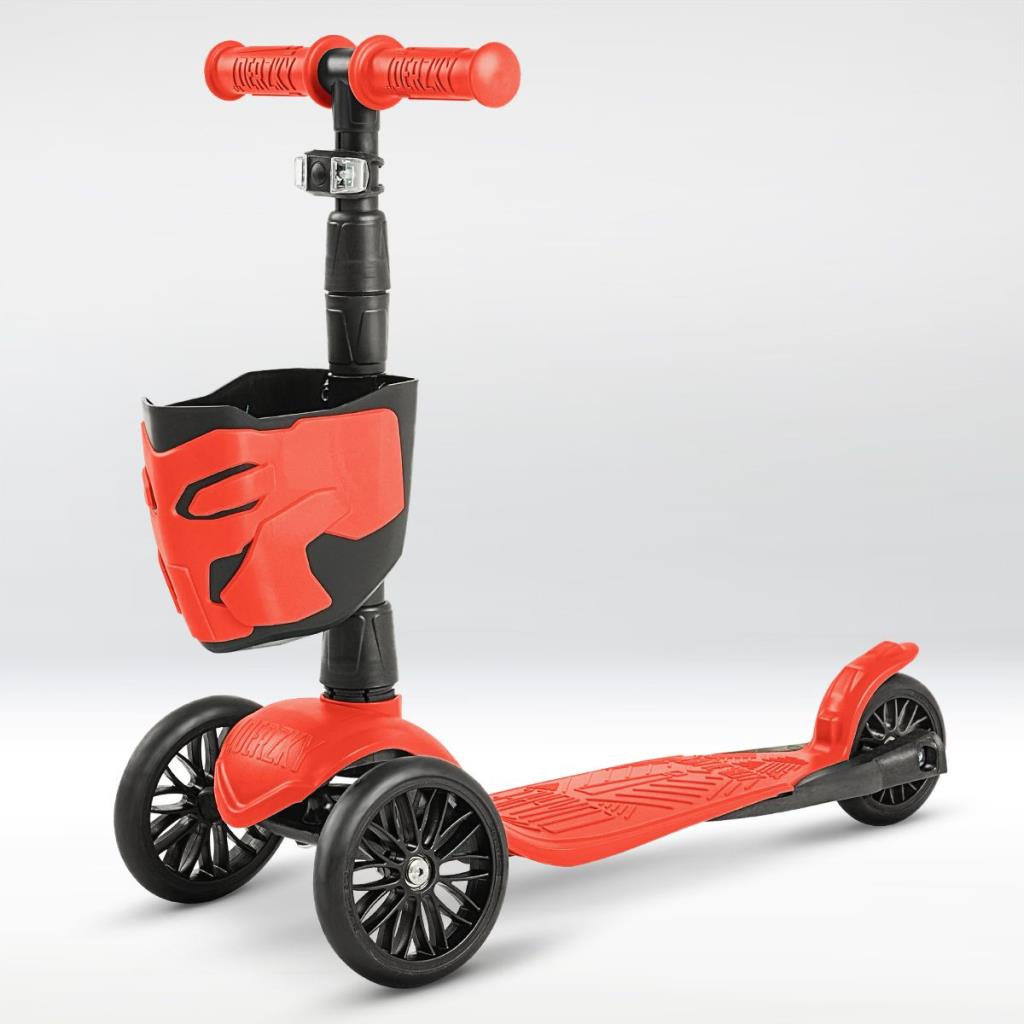 !Дерзкий Самокат трехколесный детский с корзинкой и фонариком, красный