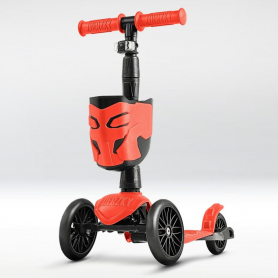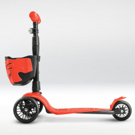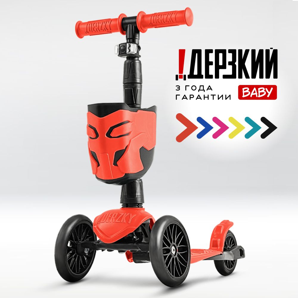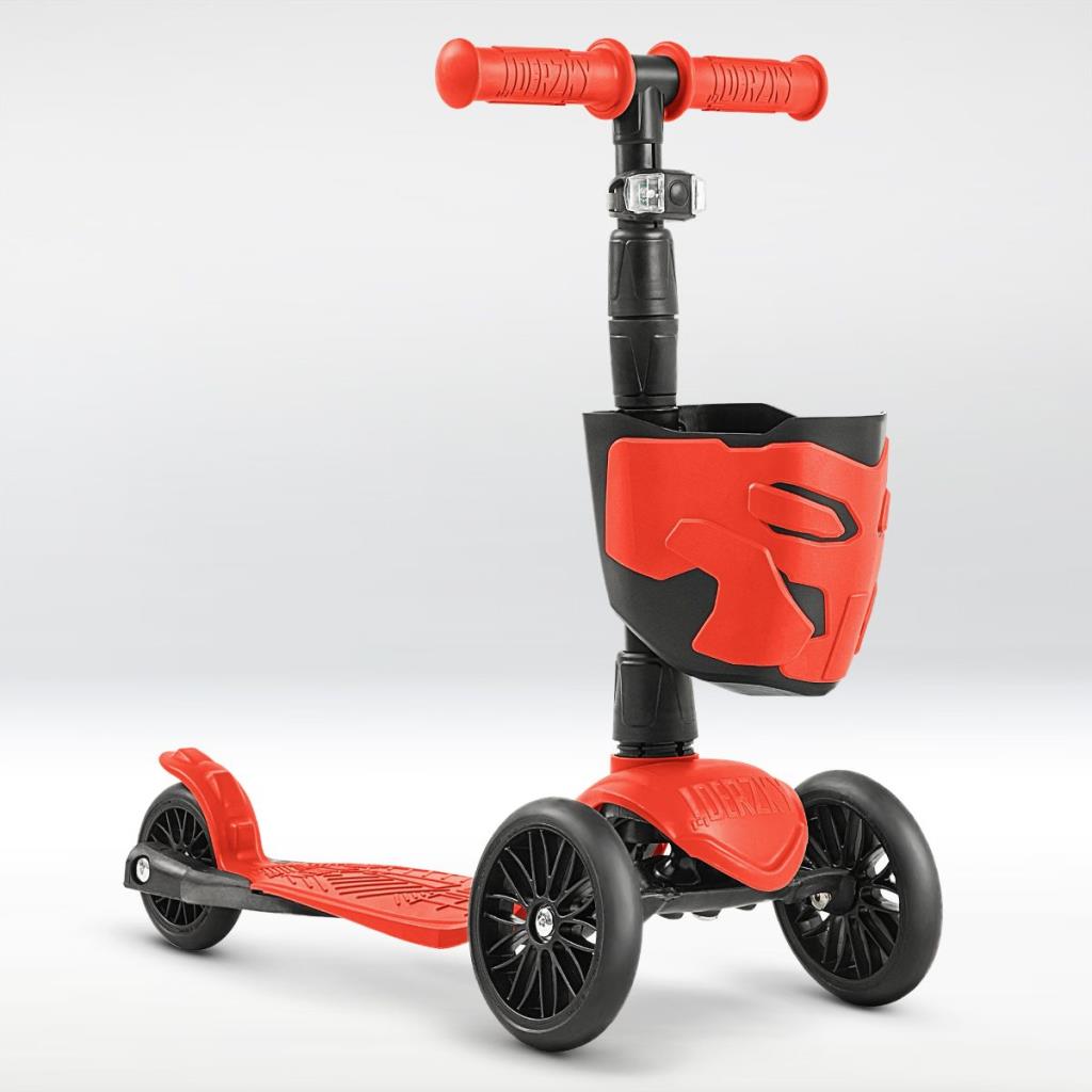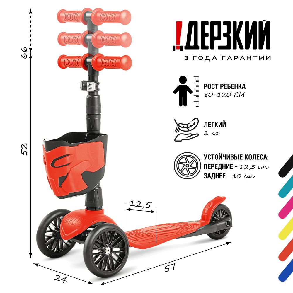 !Дерзкий Самокат трехколесный детский с корзинкой и фонариком, красный