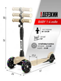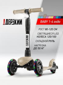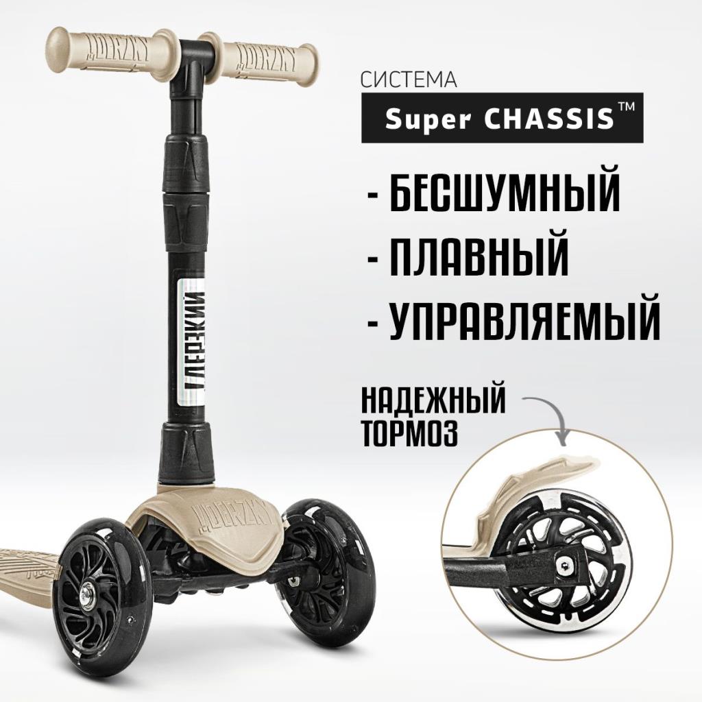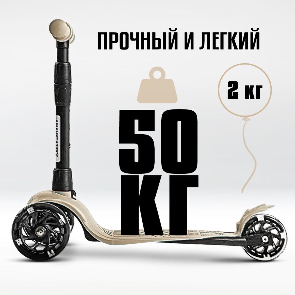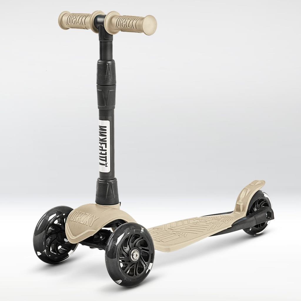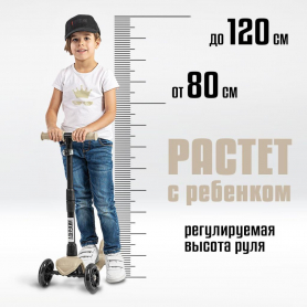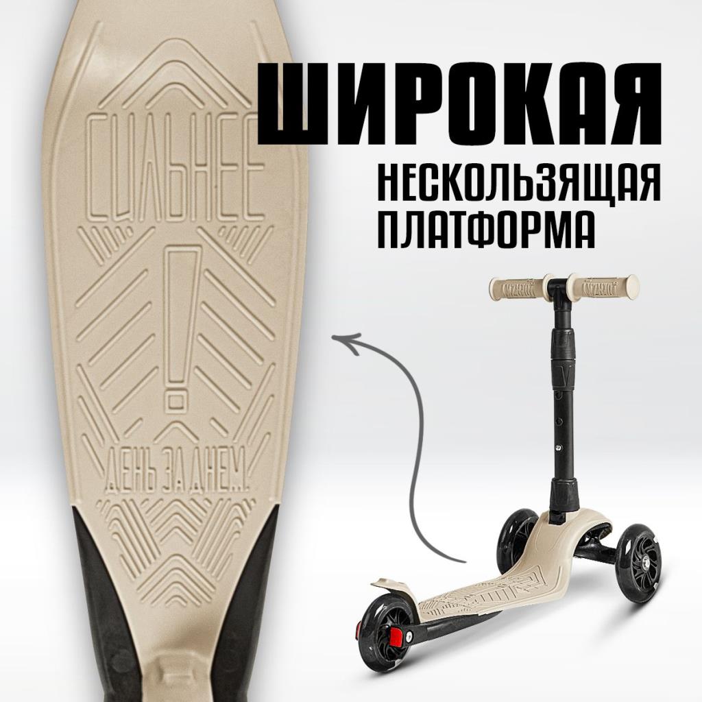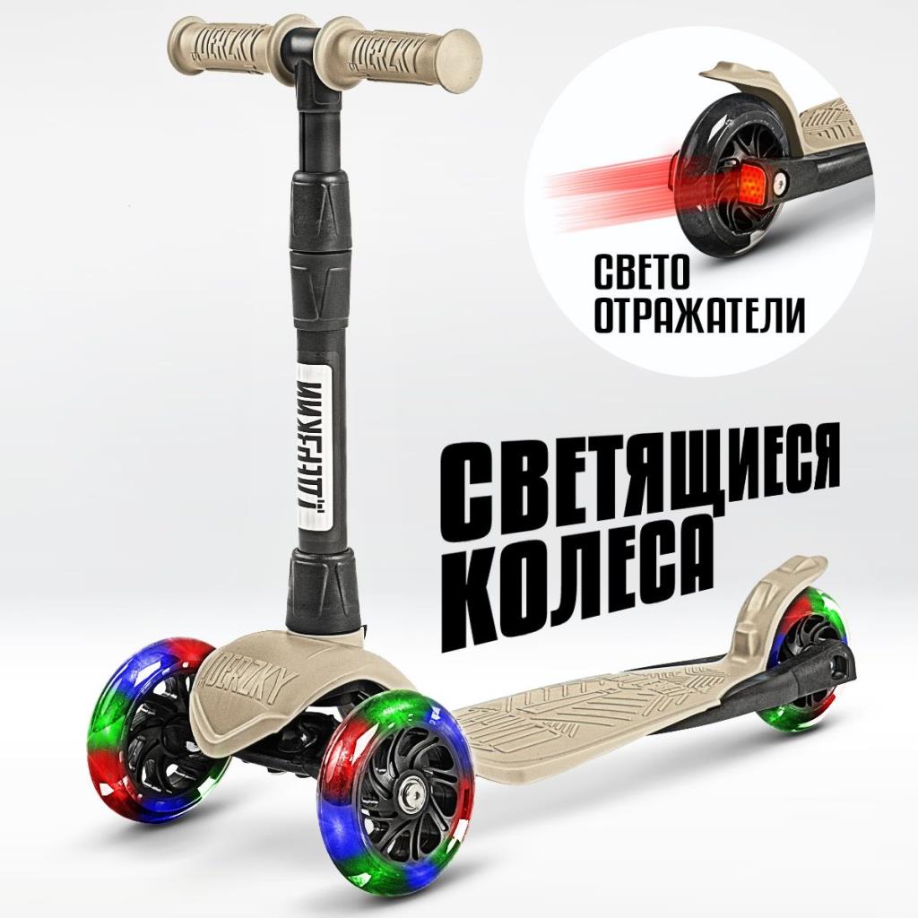 !Дерзкий Самокат трехколесный детский Стайл с фонариком 1-4 года со светящимися колесами, бежевый