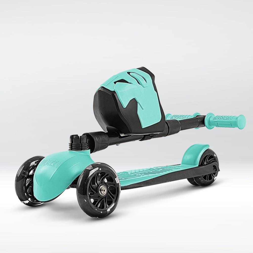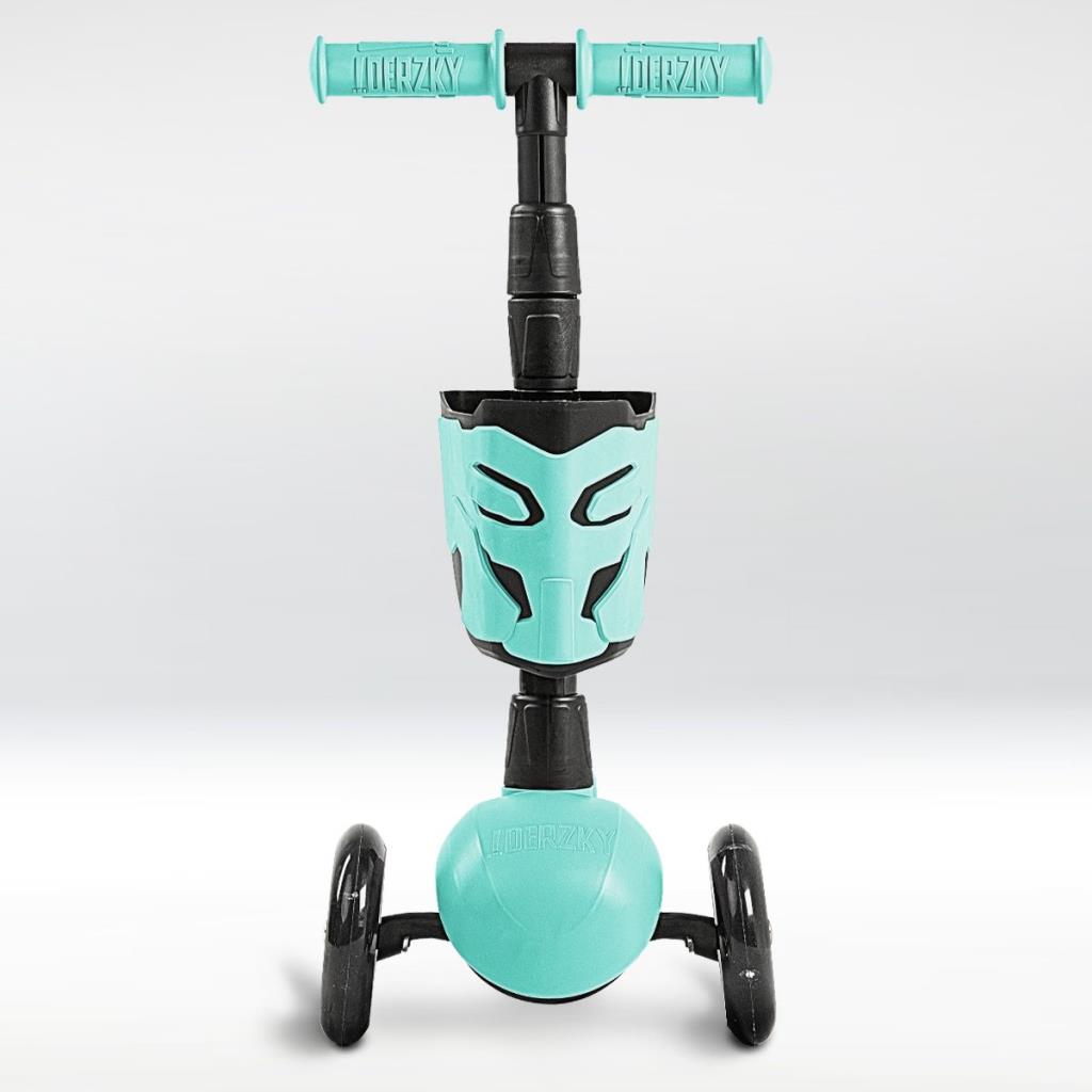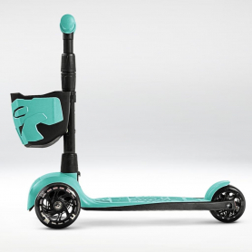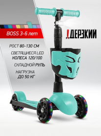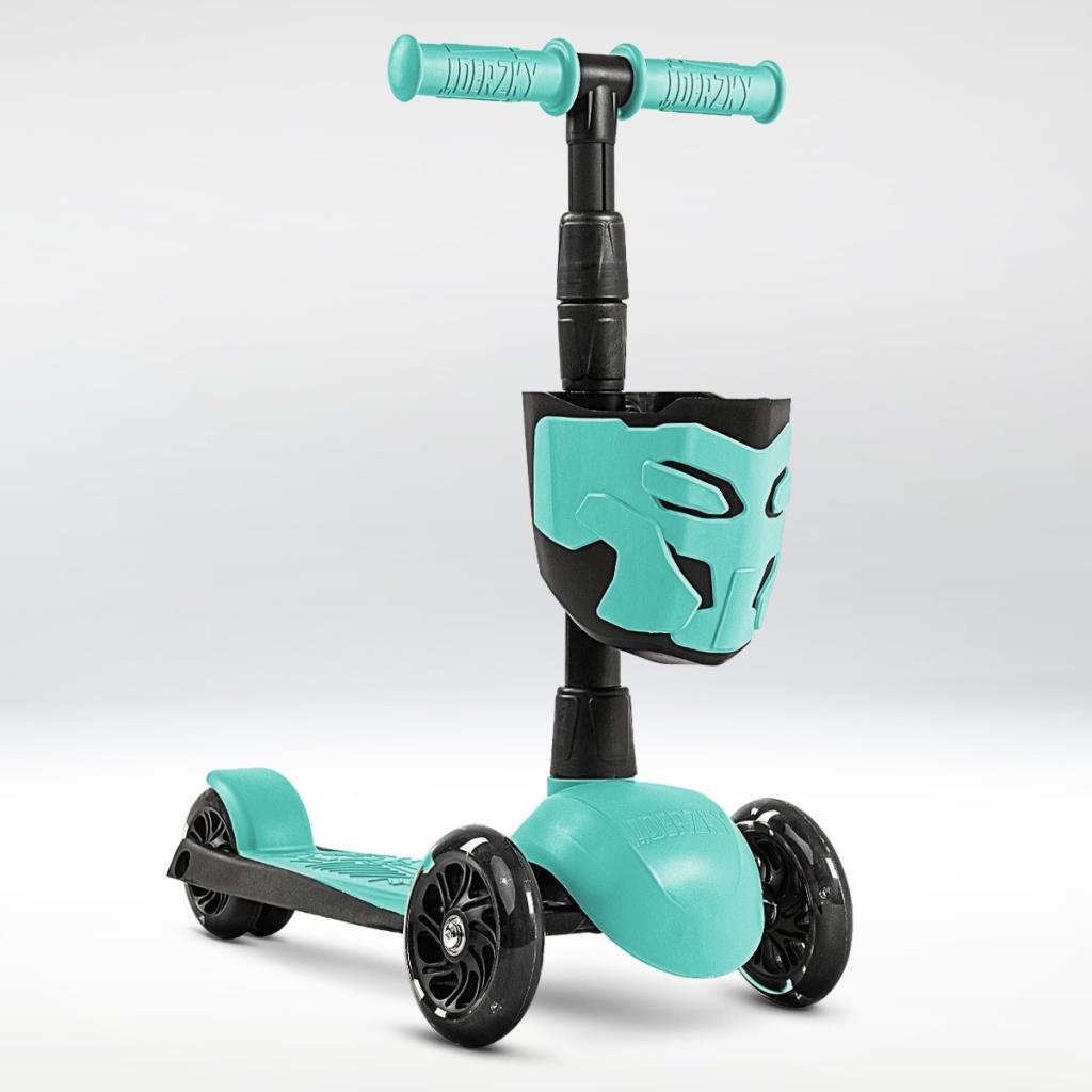 !Дерзкий Самокат трехколесный детский, светящиеся колеса с корзинкой и фонариком., бирюзовый