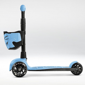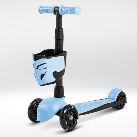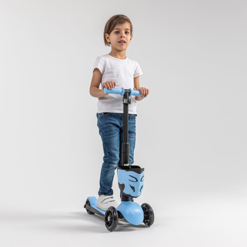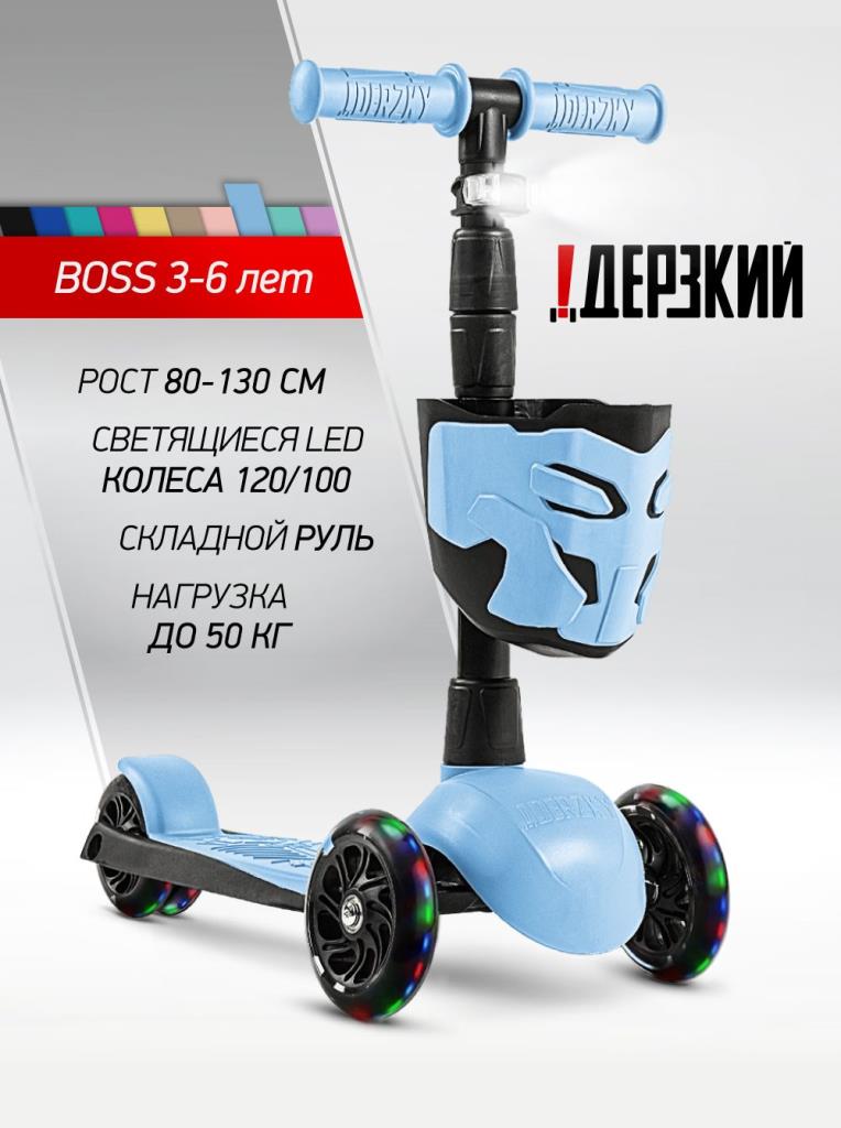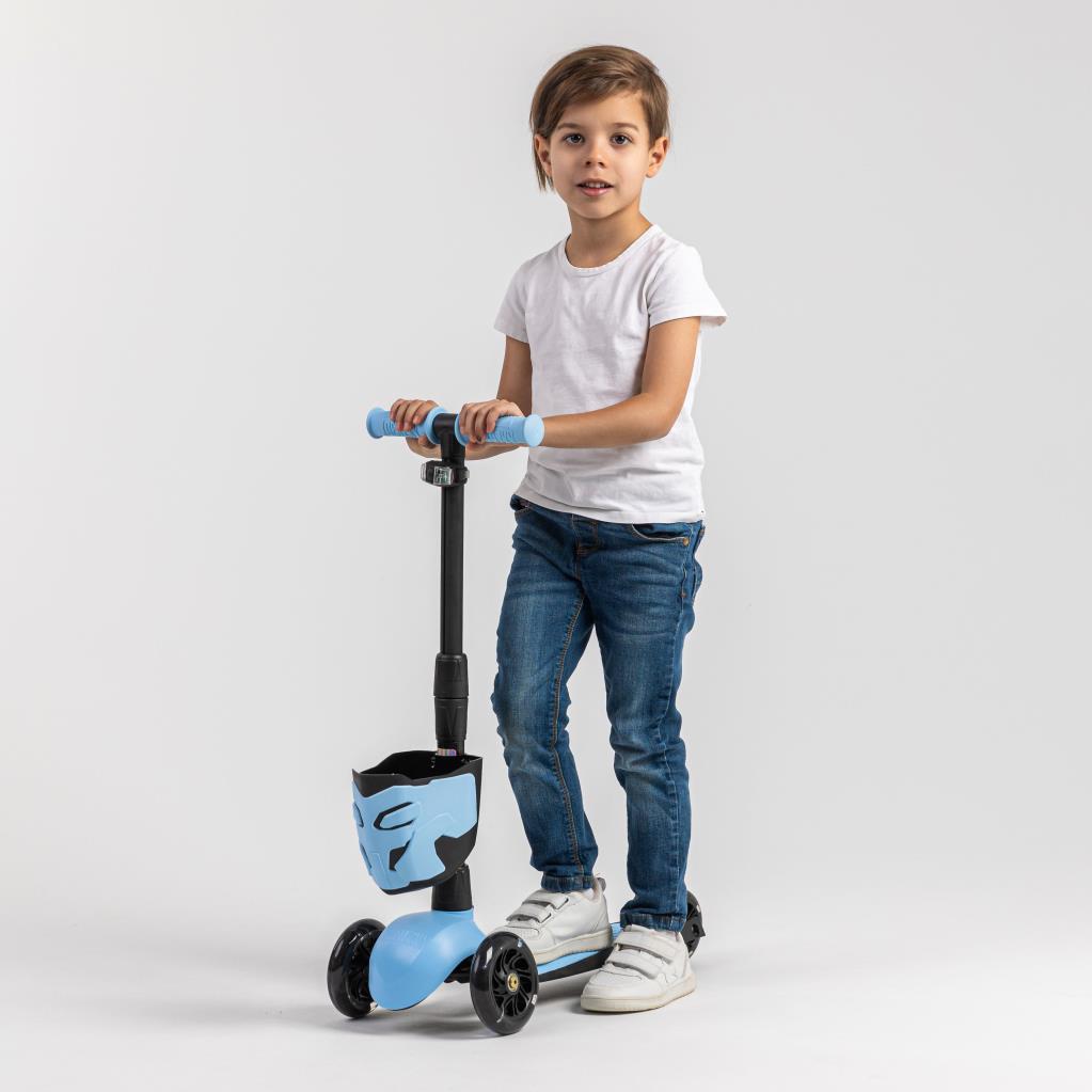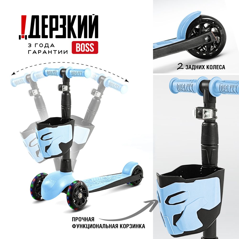 !Дерзкий Самокат трехколесный детский, светящиеся колеса с корзинкой и фонариком., голубой