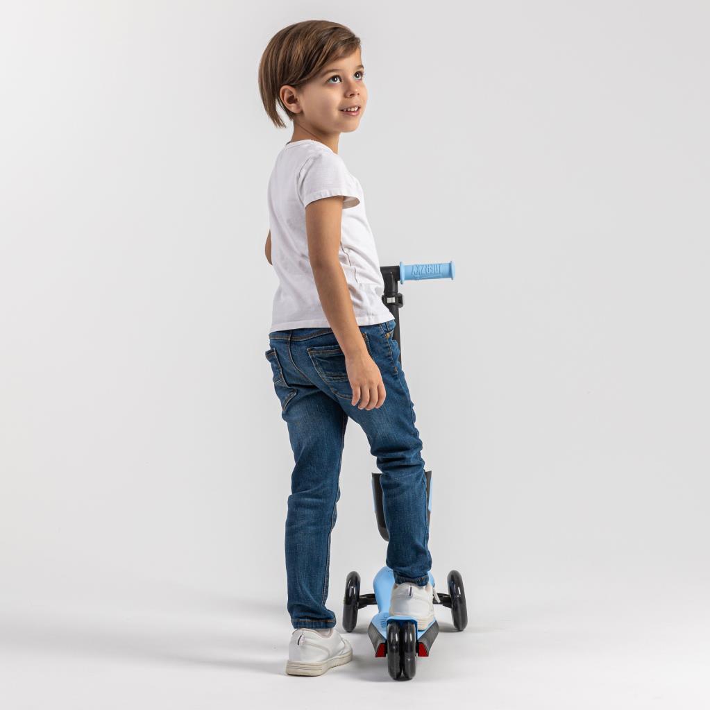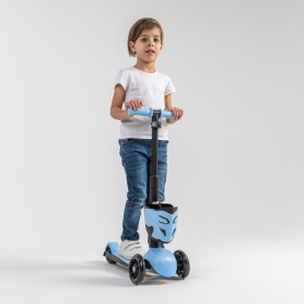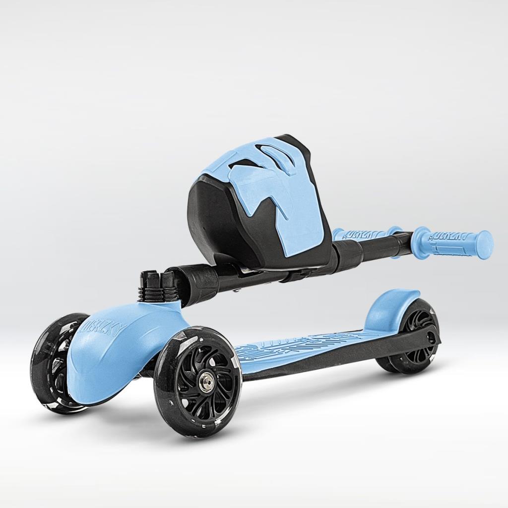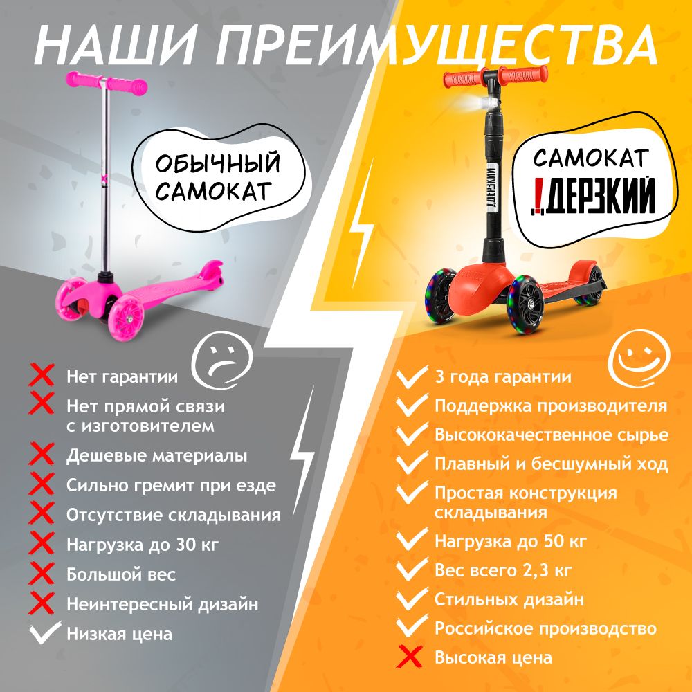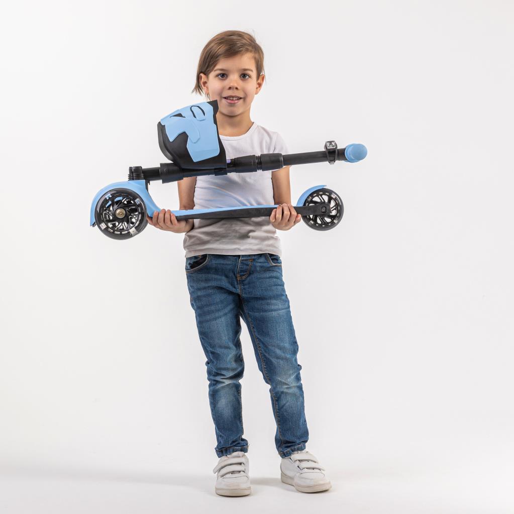 !Дерзкий Самокат трехколесный детский, светящиеся колеса с корзинкой и фонариком., голубой