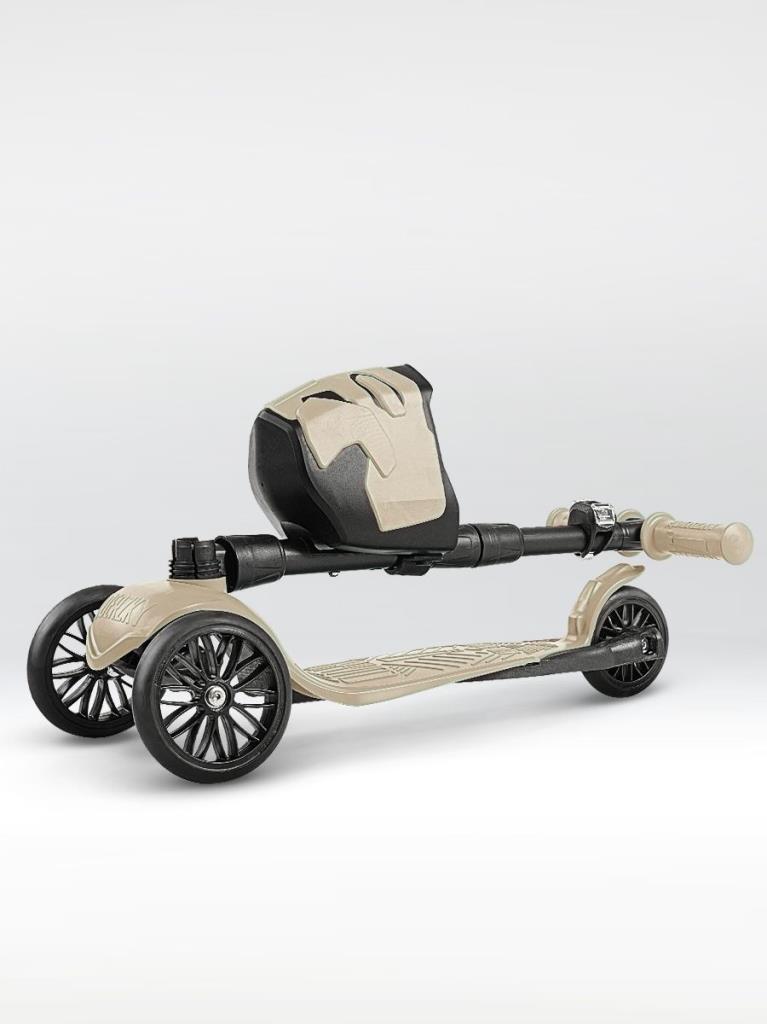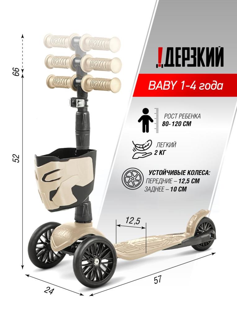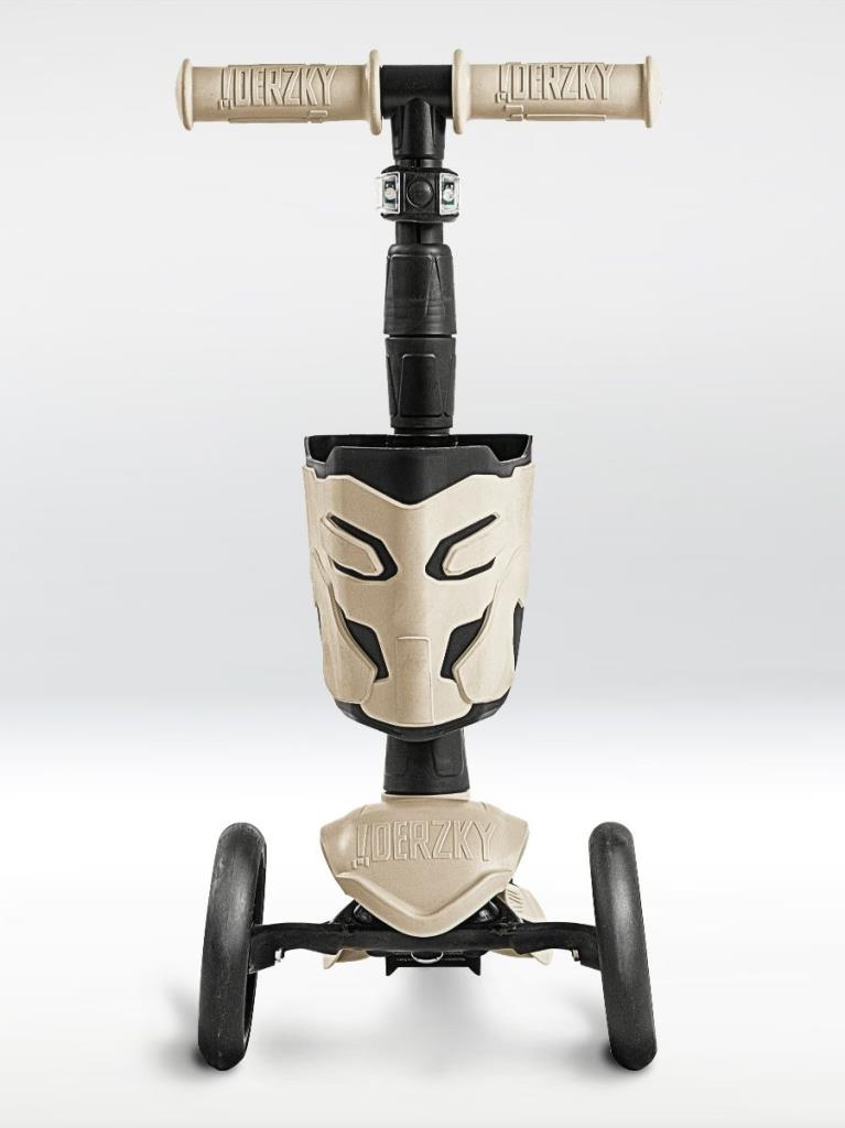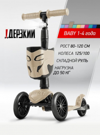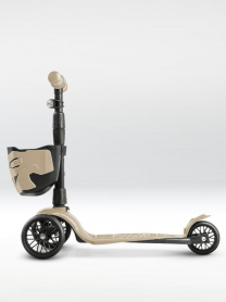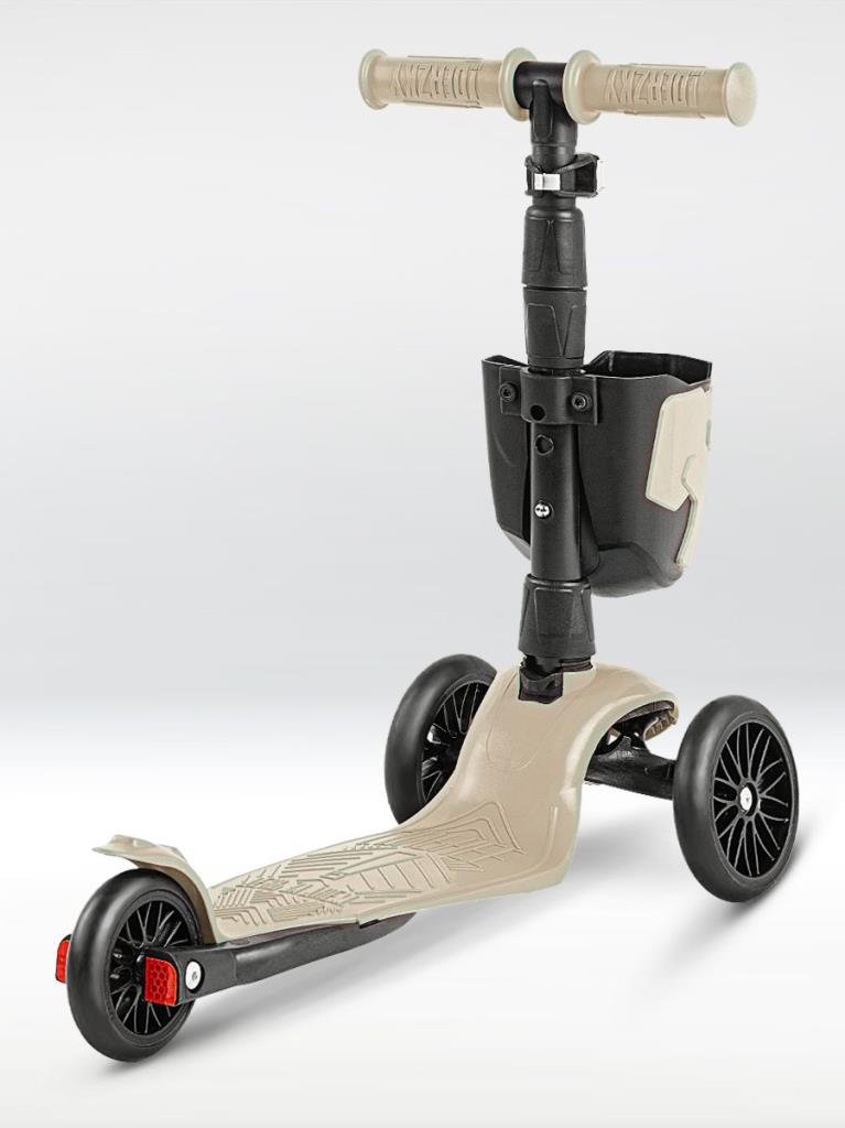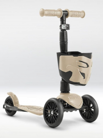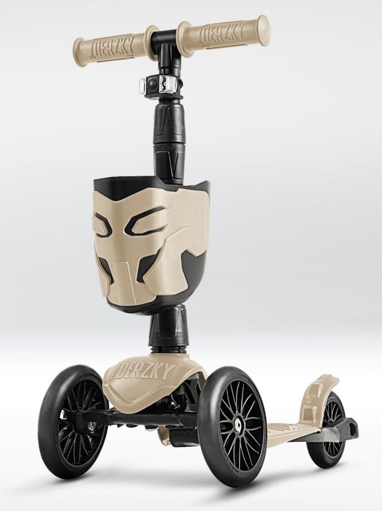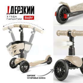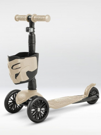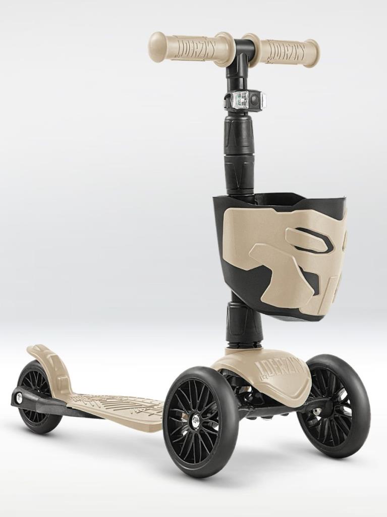 !Дерзкий Самокат трехколесный детский с корзинкой и фонариком, светло-бежевый