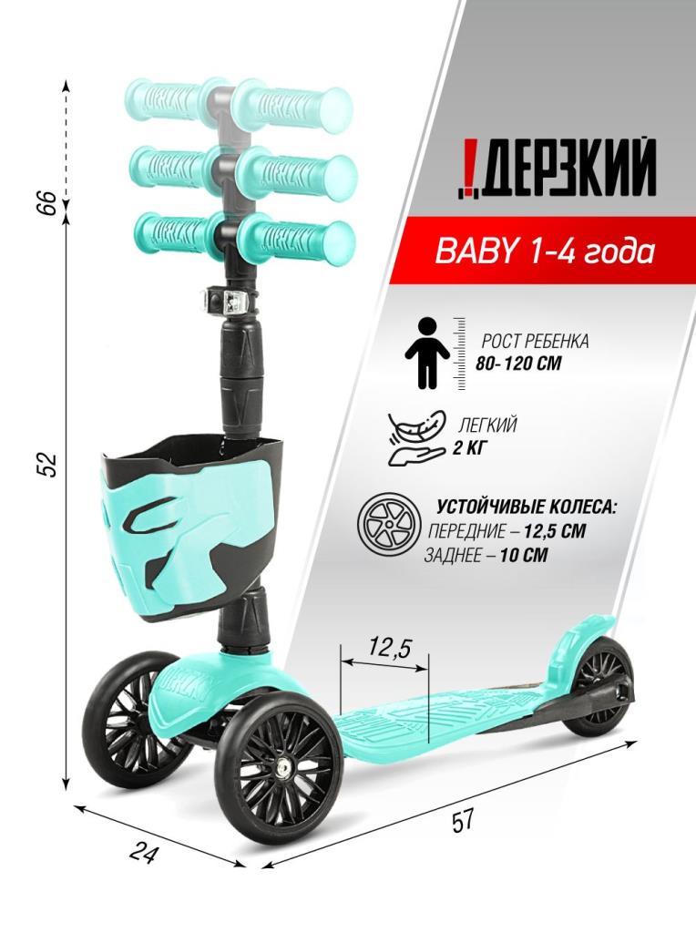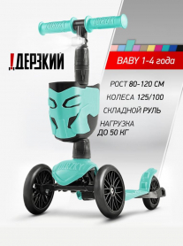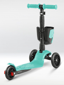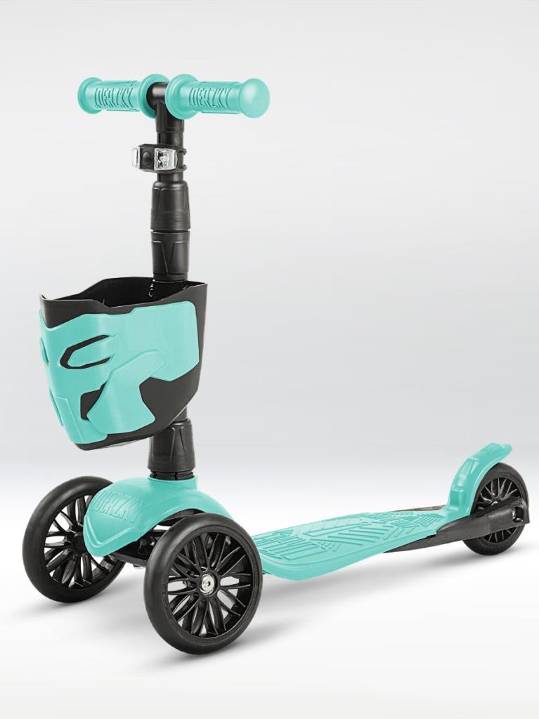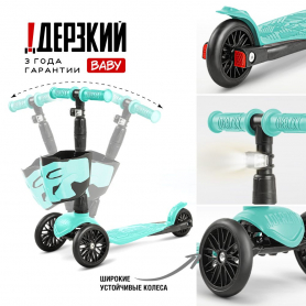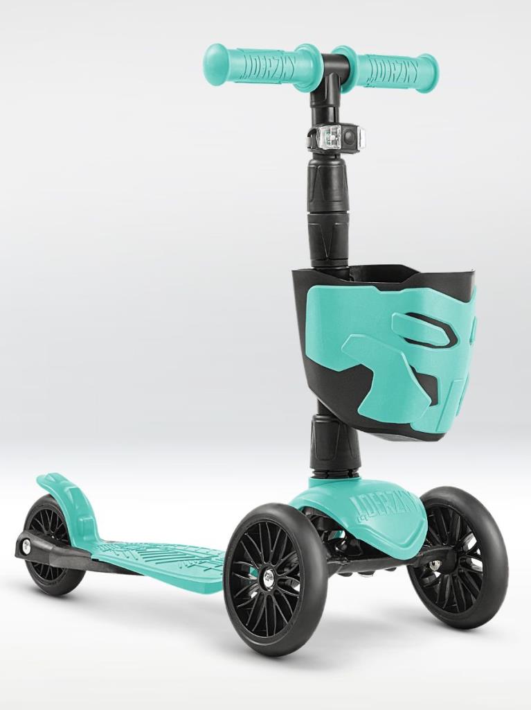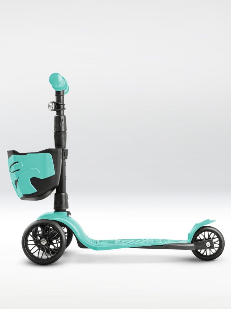 !Дерзкий Самокат трехколесный детский с корзинкой и фонариком, бирюзовый