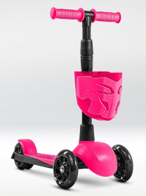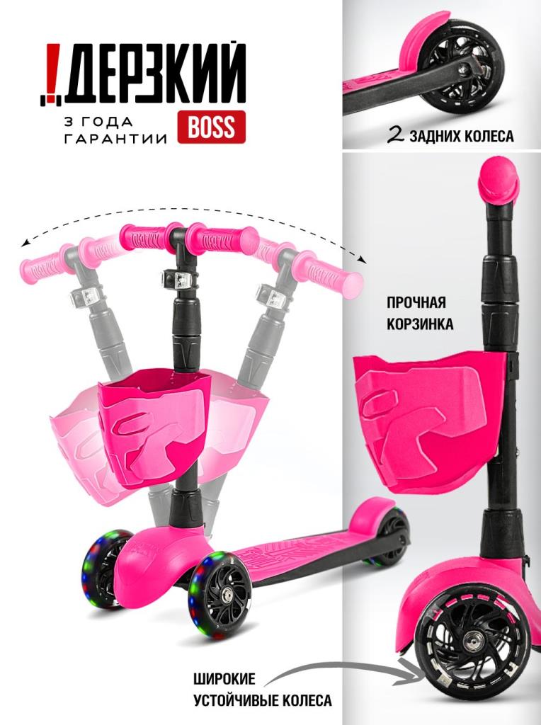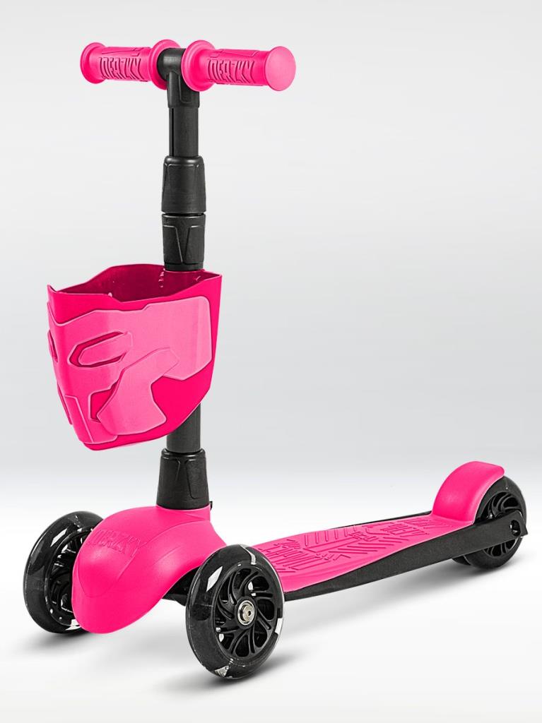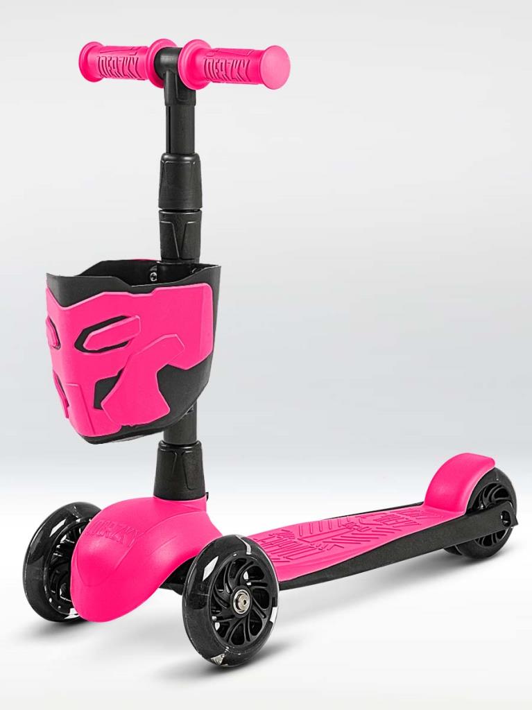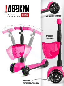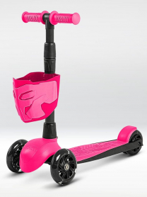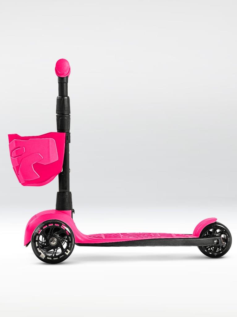 !Дерзкий Самокат трехколесный детский, светящиеся колеса с корзинкой и фонариком., розовый