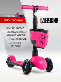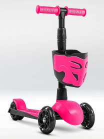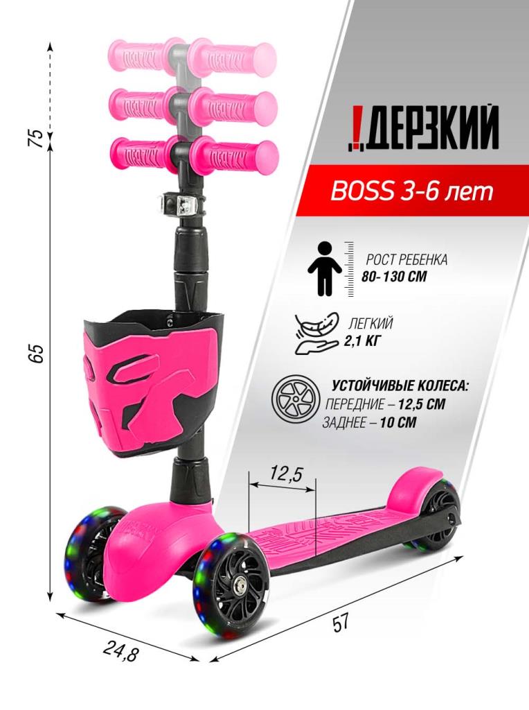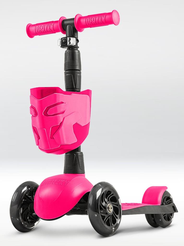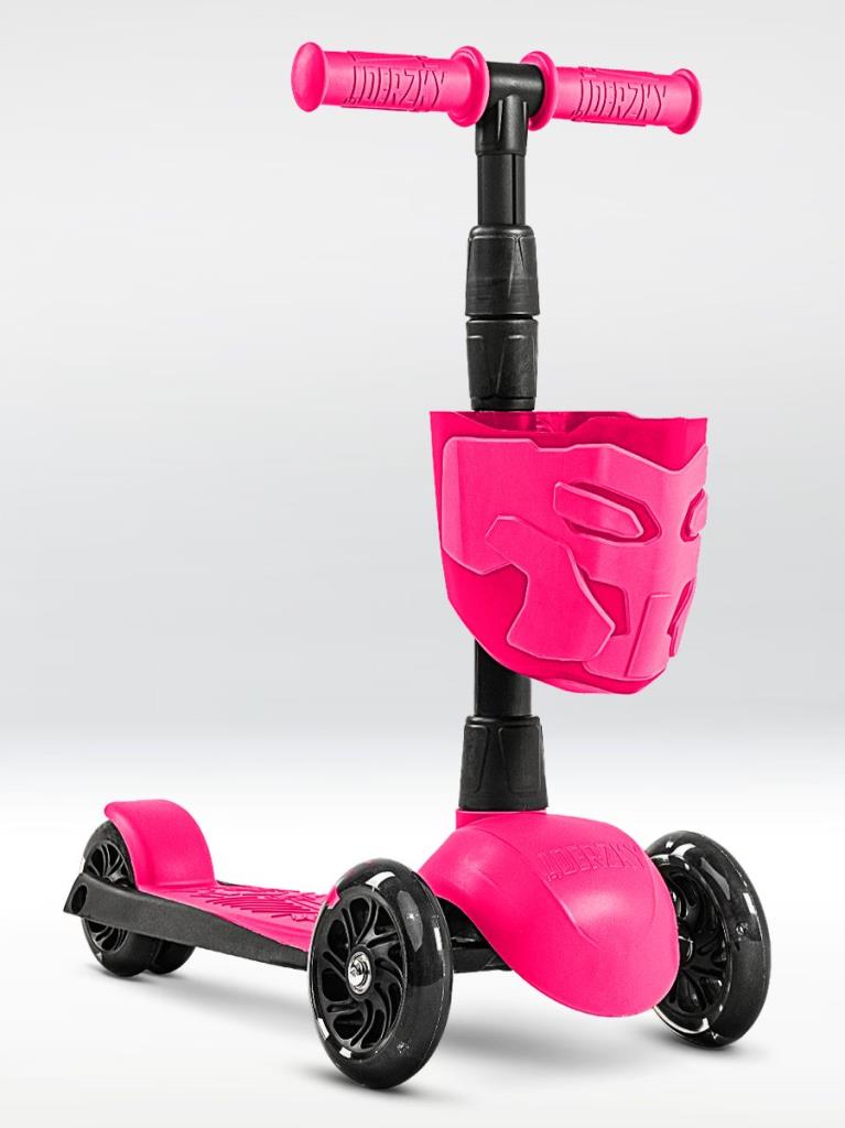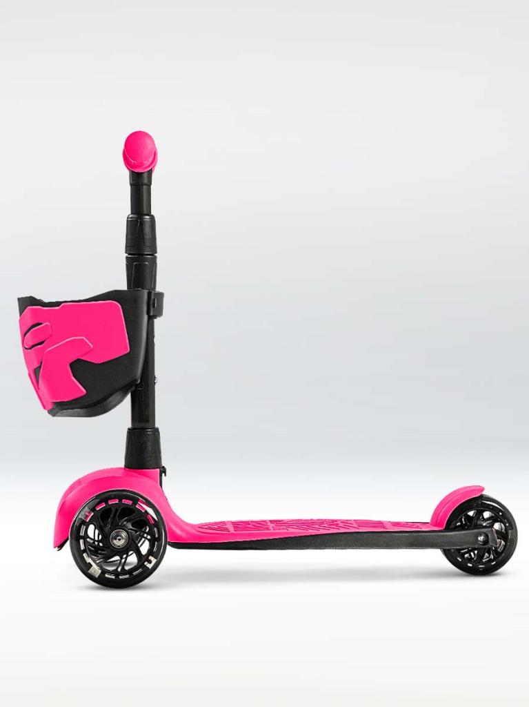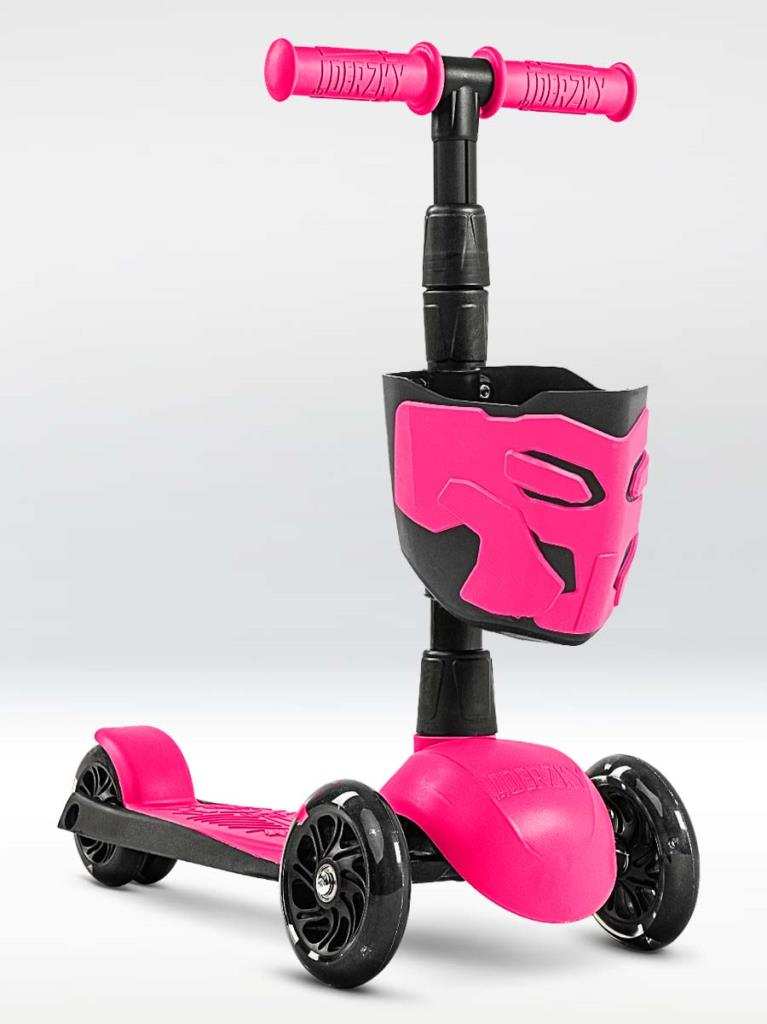 !Дерзкий Самокат трехколесный детский, светящиеся колеса с корзинкой и фонариком., розовый