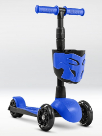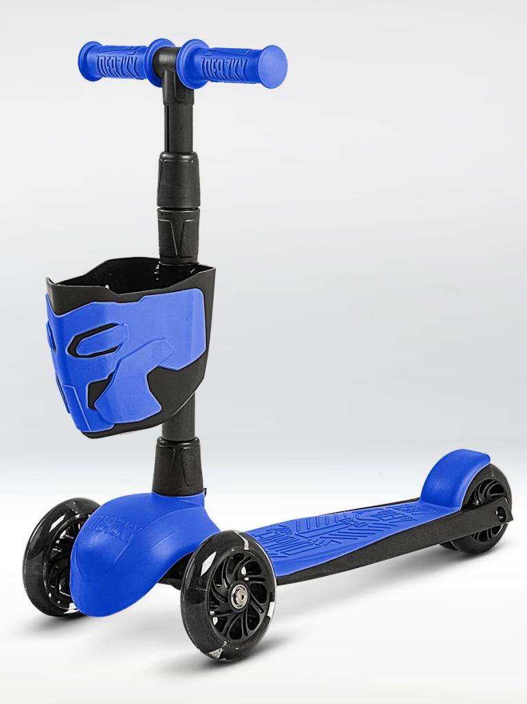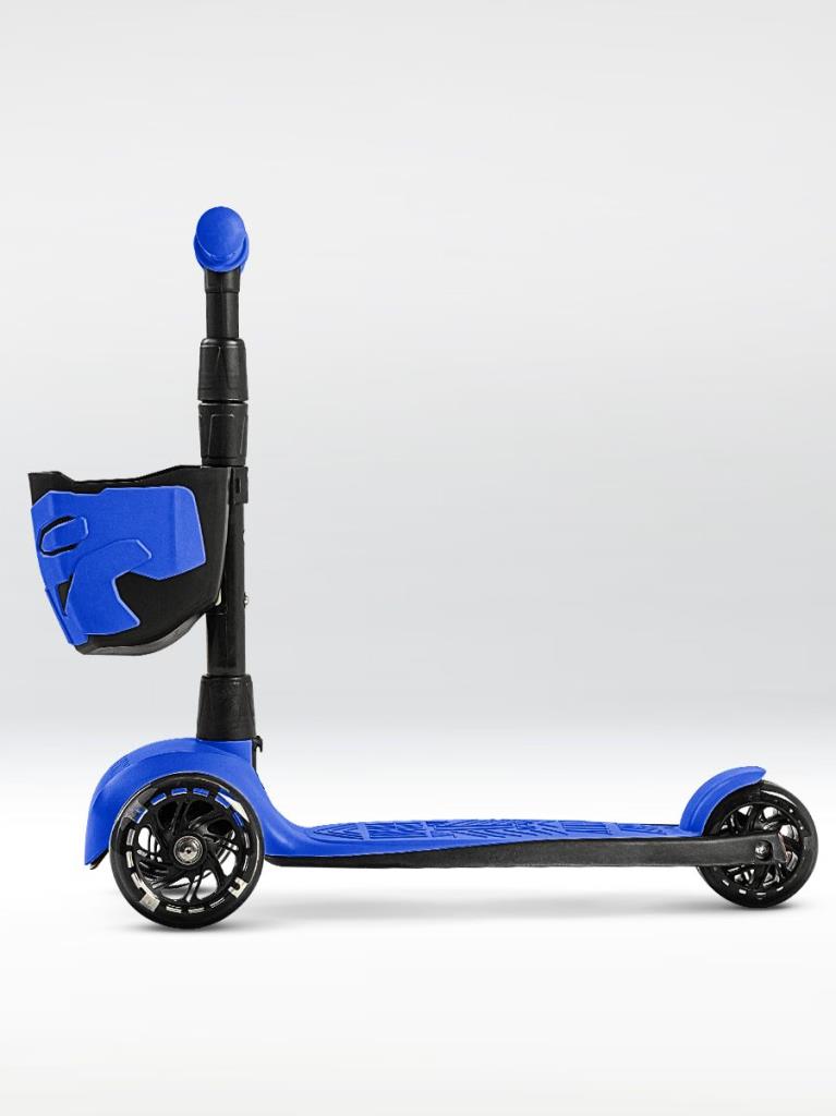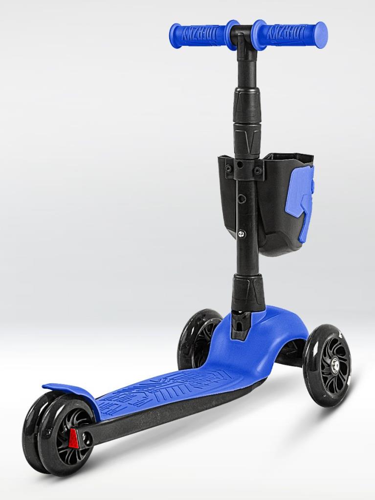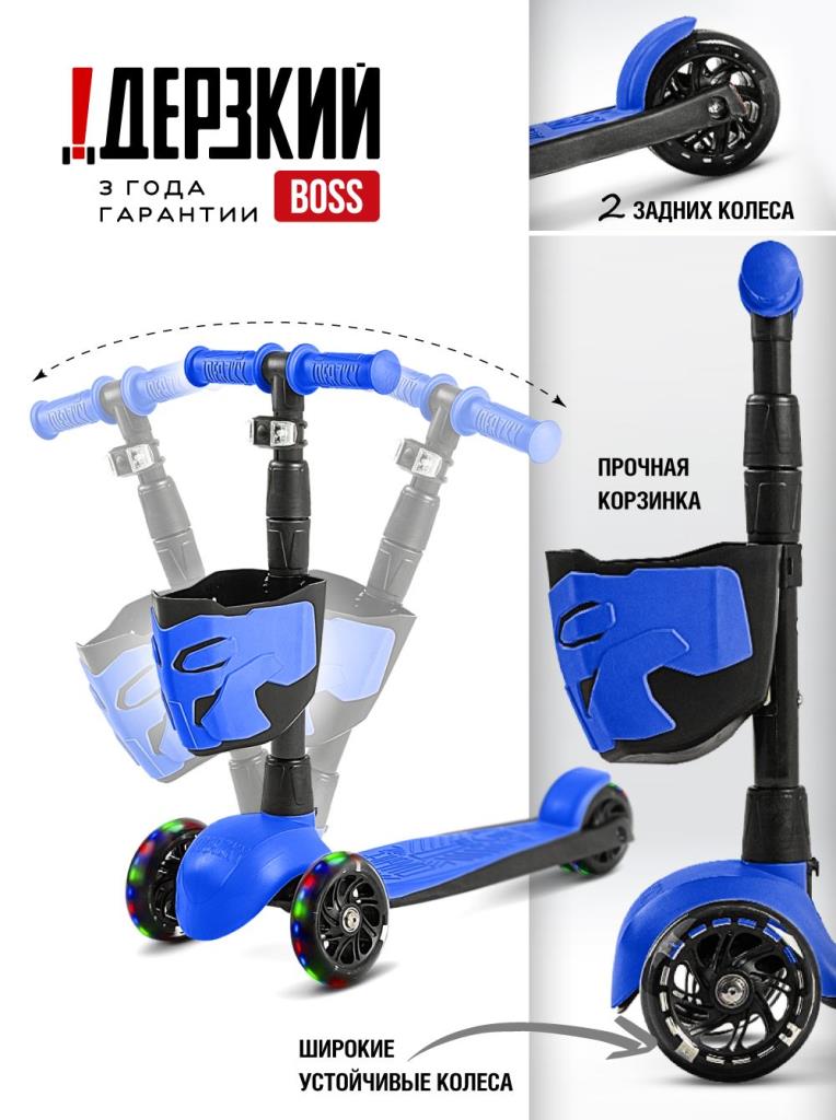 !Дерзкий Самокат трехколесный детский, светящиеся колеса с корзинкой и фонариком., синий