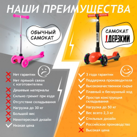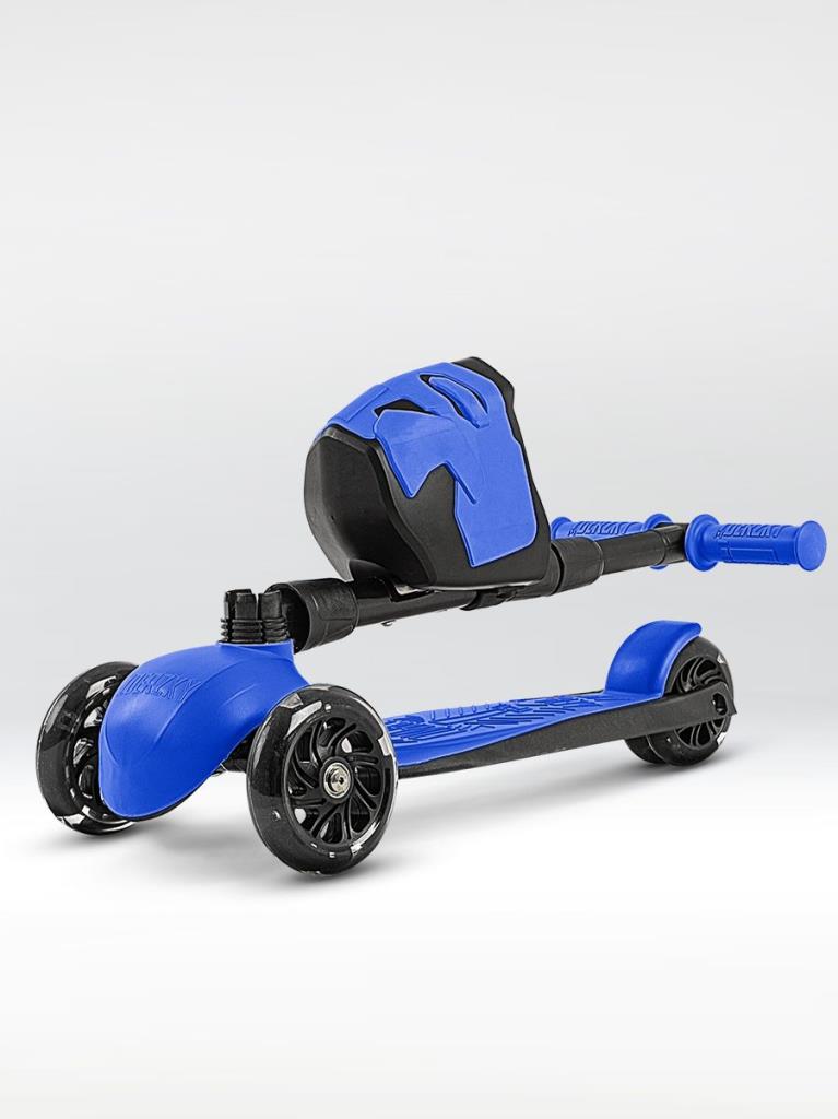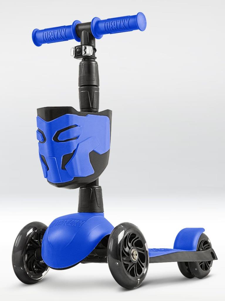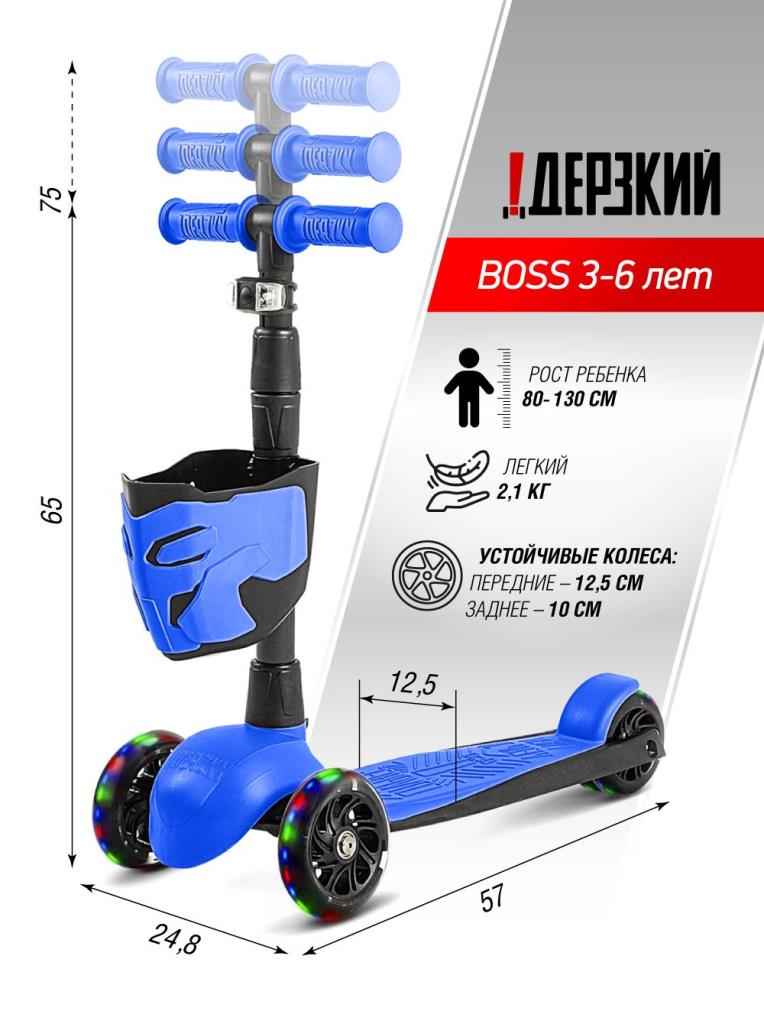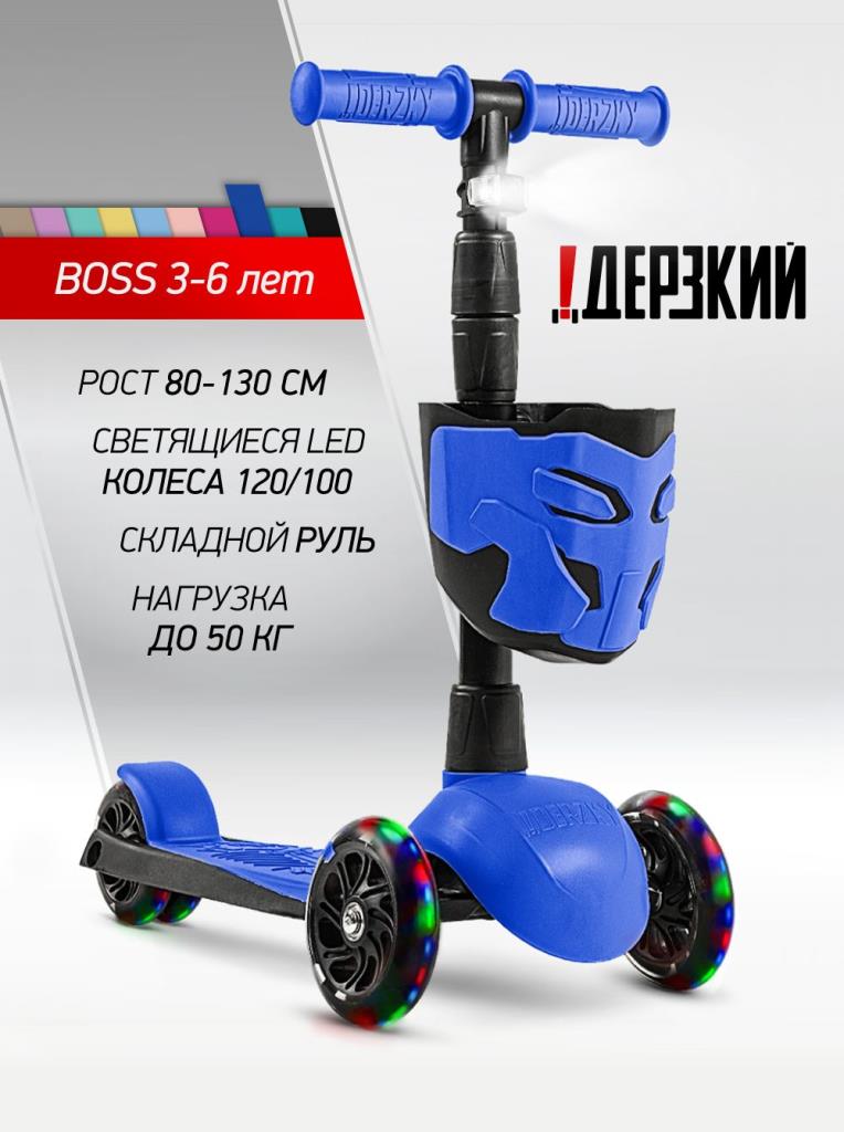 !Дерзкий Самокат трехколесный детский, светящиеся колеса с корзинкой и фонариком., синий