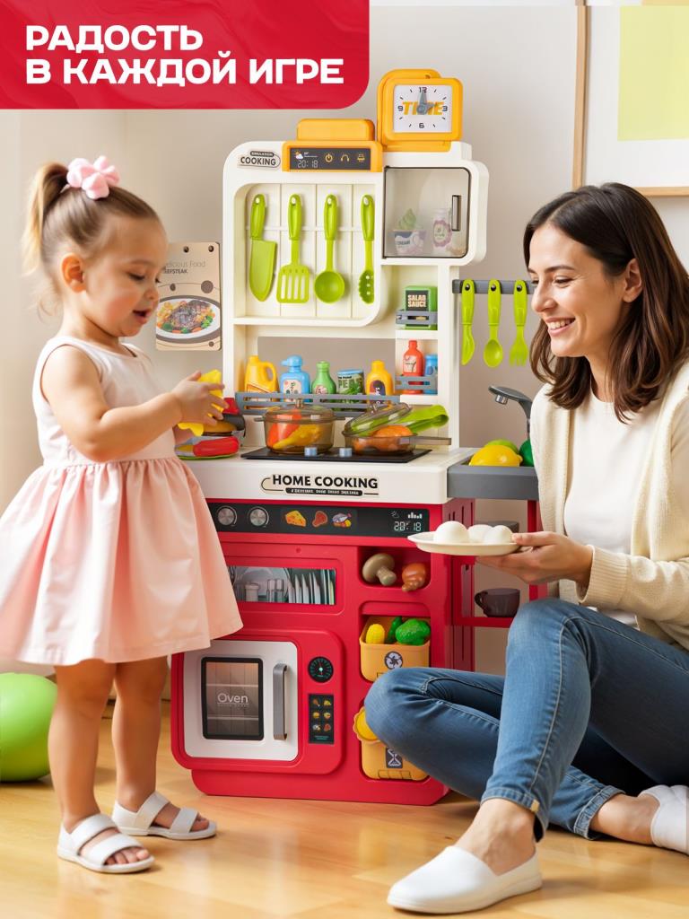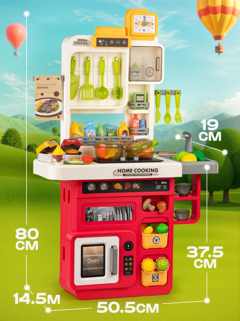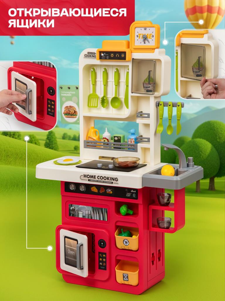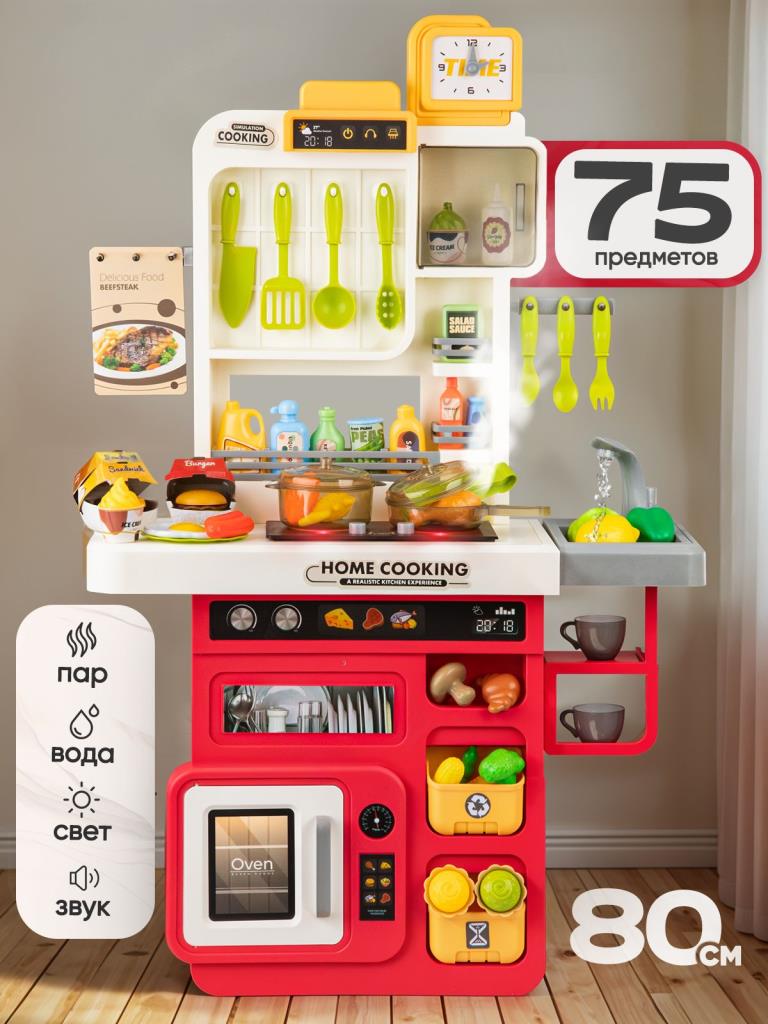 Кухня детская игровая UT 80 см с водой и паром, свет, звук / 75 предметов/