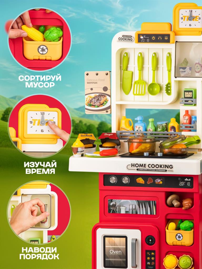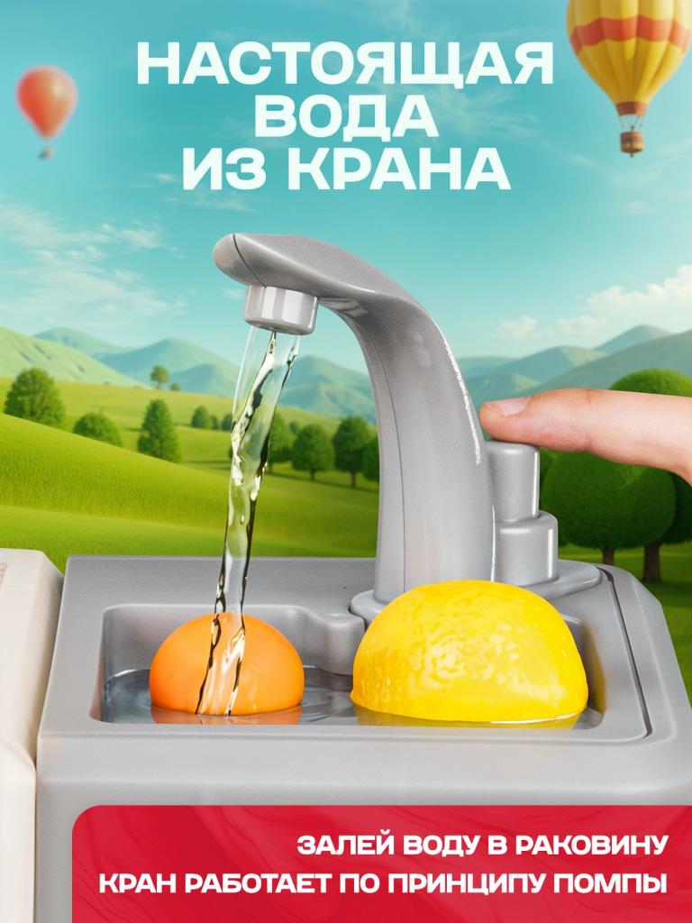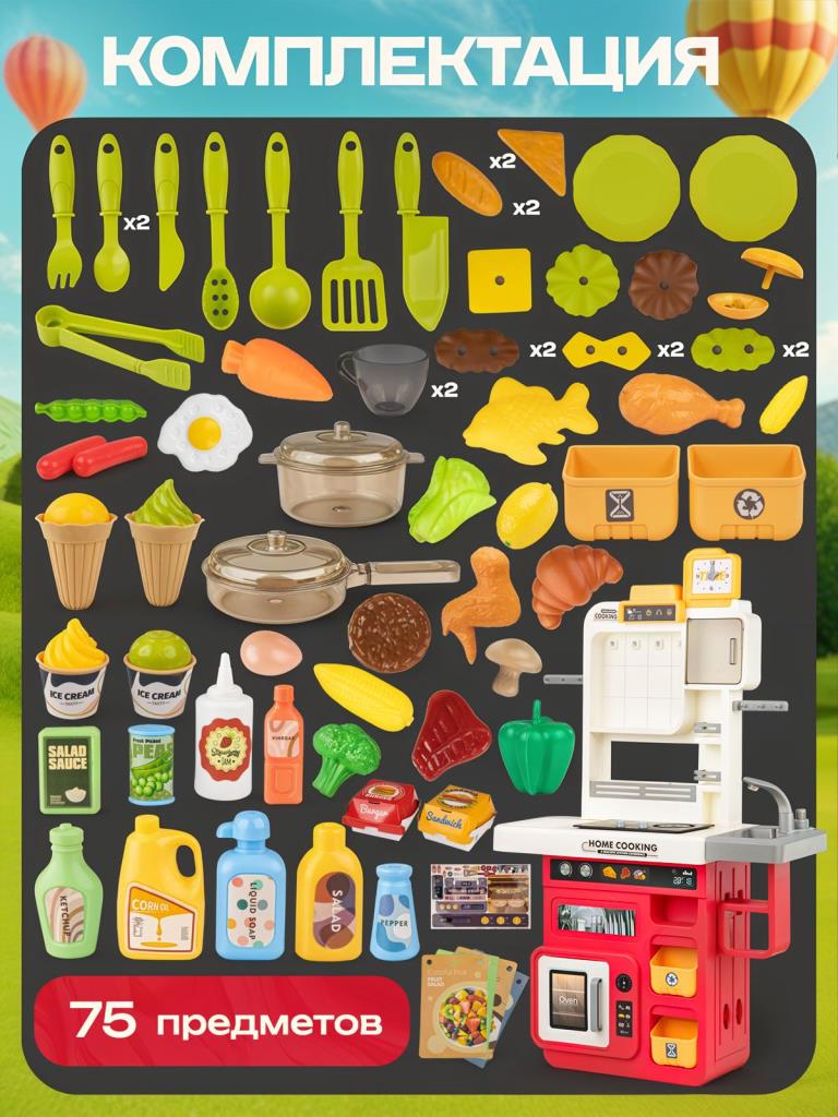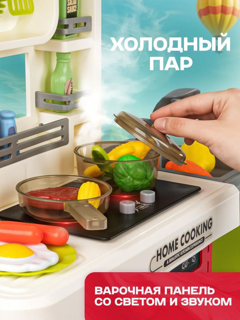 Кухня детская игровая UT 80 см с водой и паром, свет, звук / 75 предметов/