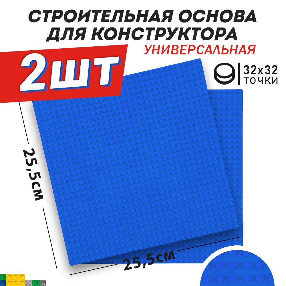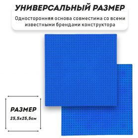 Основа / пластина / платформа для конструктора универсальная, синяя 25,5*25,5 см, 2 шт