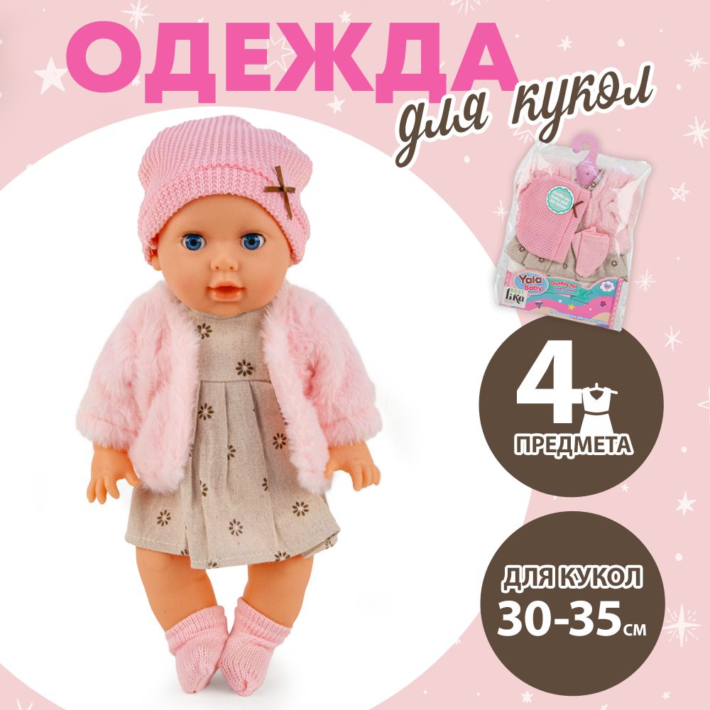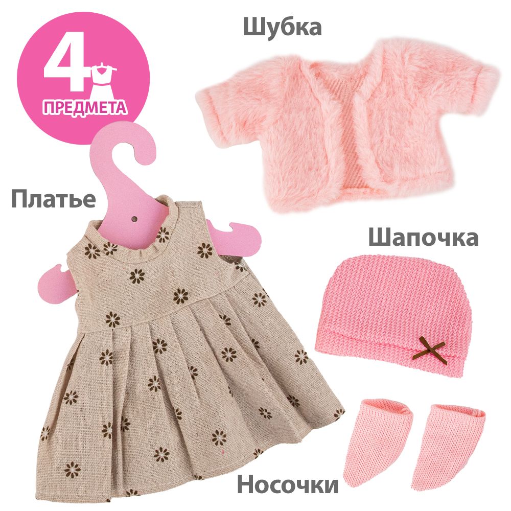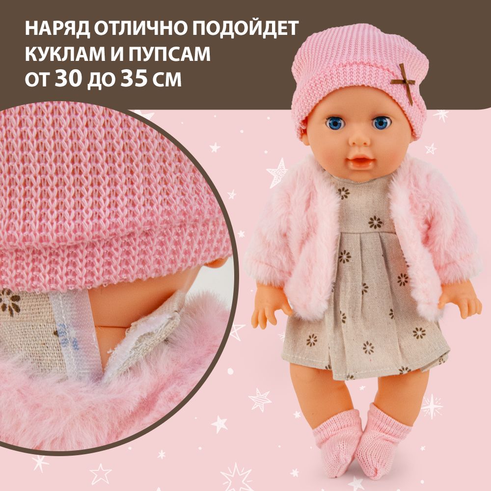 Одежда для кукол 30-35 см/ Шубка, шапочка, платье, носочки