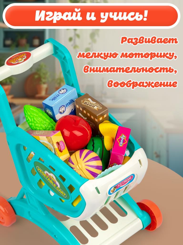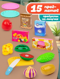 Игровой набор UT / Игрушечные продукты на липучках / Игрушечная еда с тележкой 15 предметов
