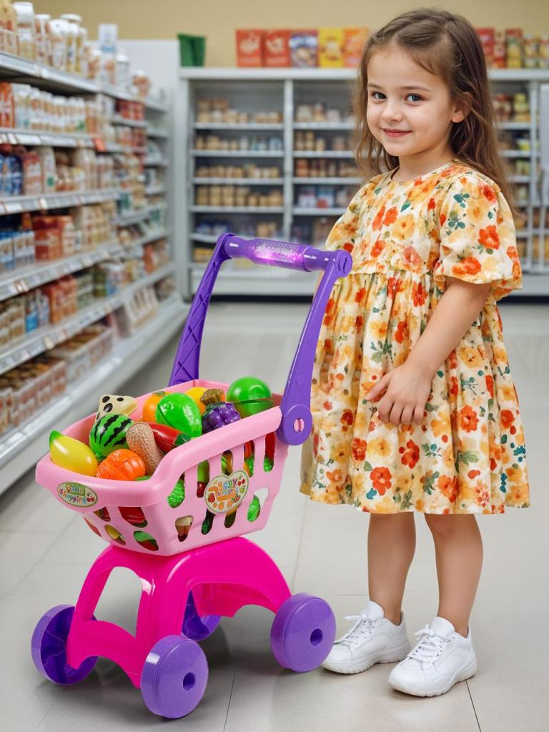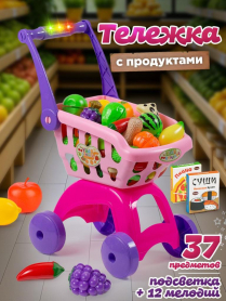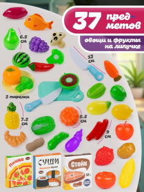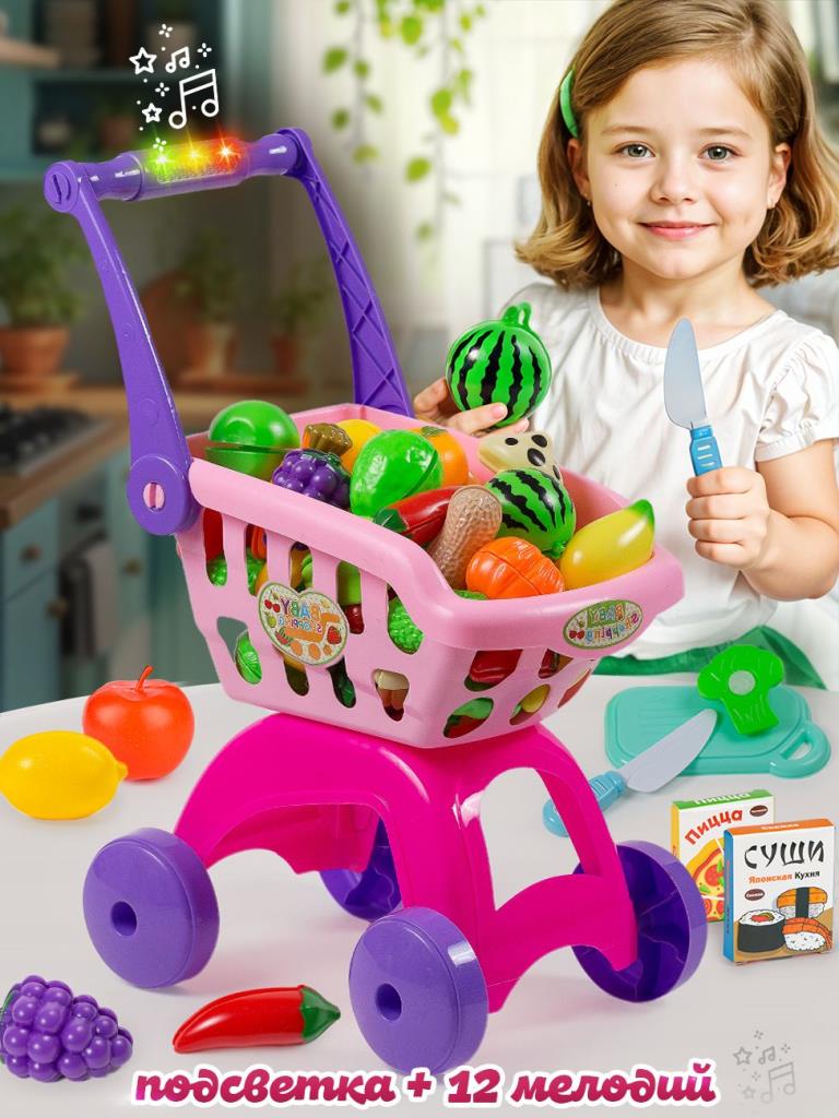 Игровой набор UT / Игрушечные продукты на липучках / Игрушечная еда с тележкой 29 предметов