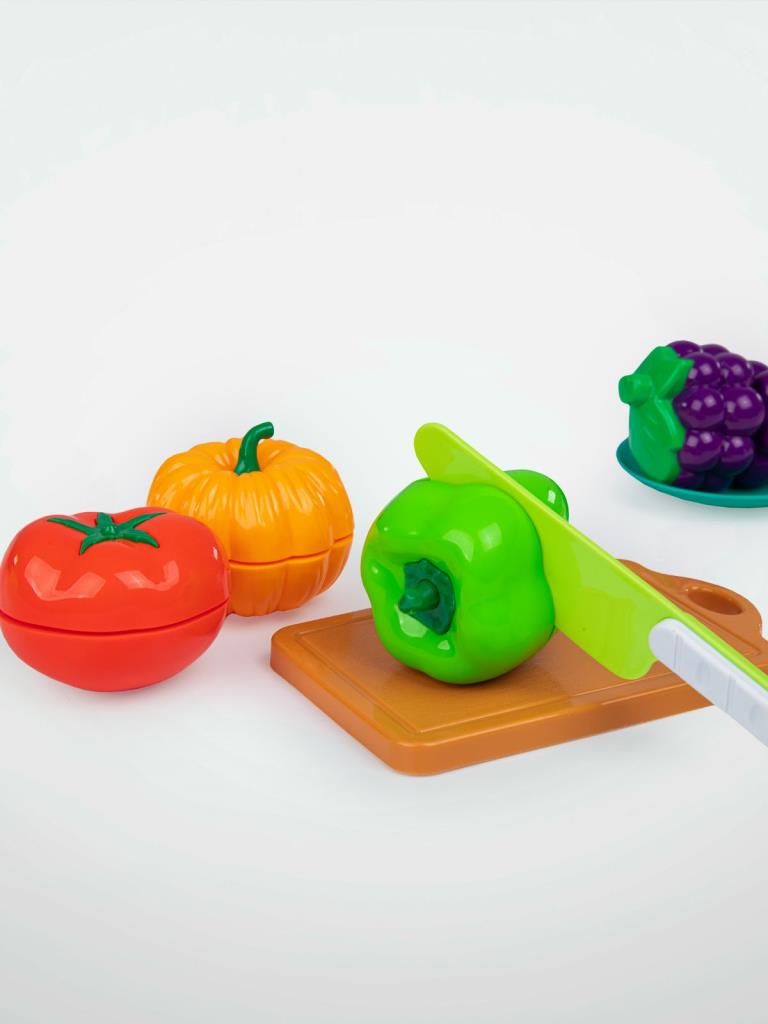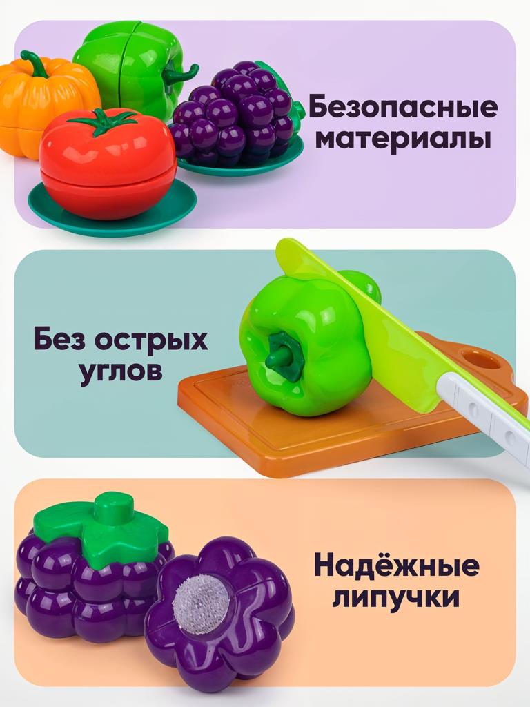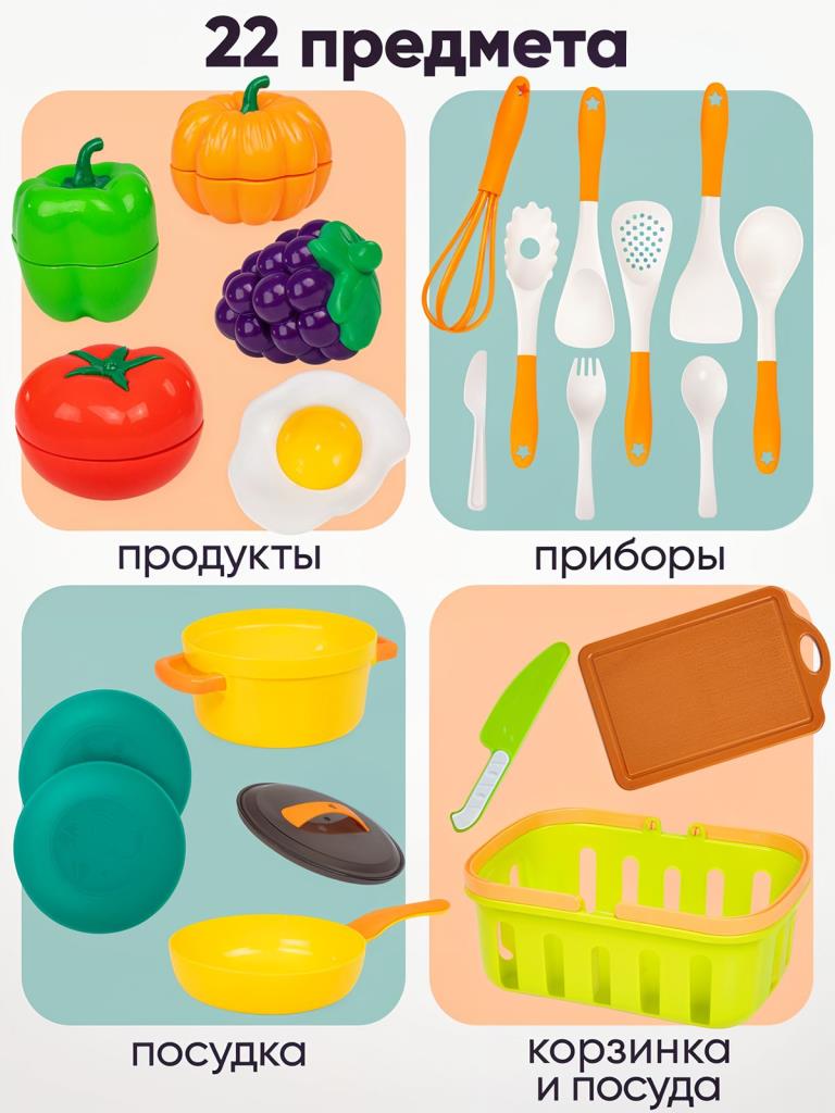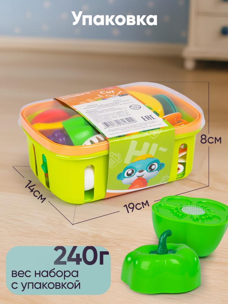 Игровой набор UT / Игрушечные продукты овощи и фрукты на липучках с посудкой / Игрушечная еда, 22 предмета