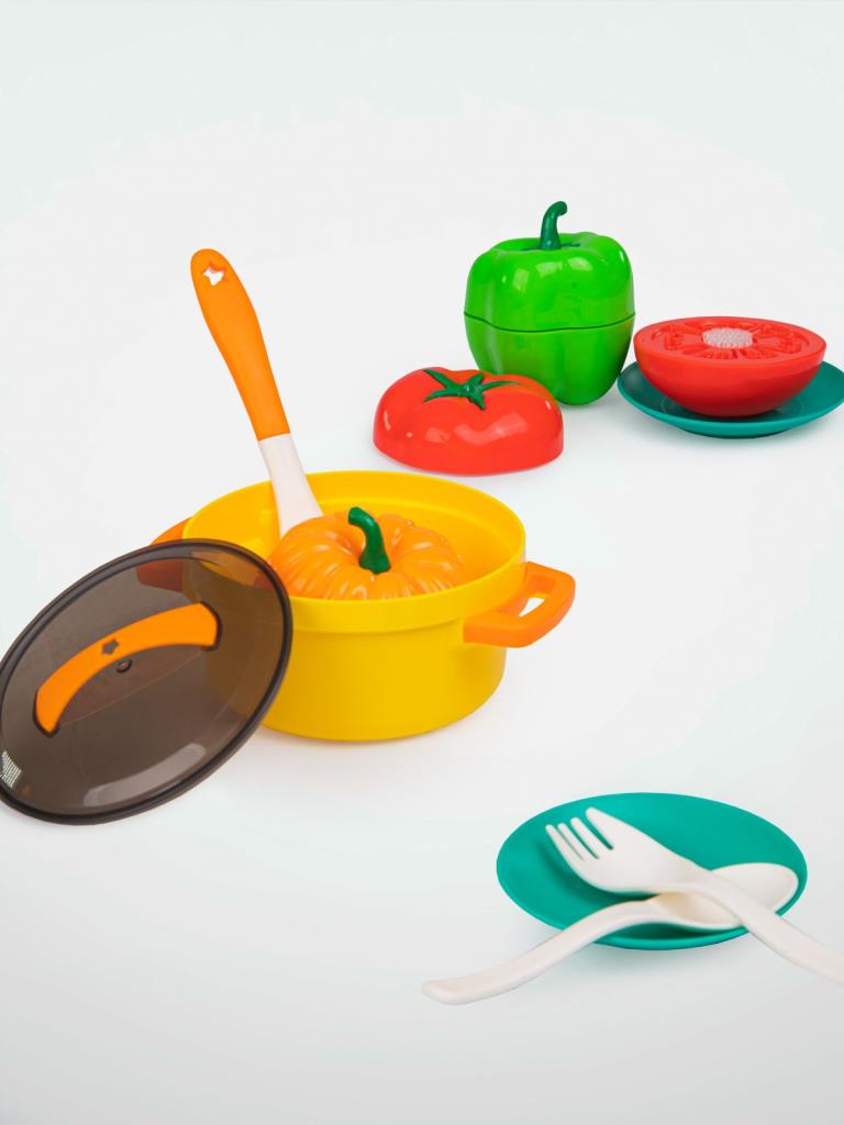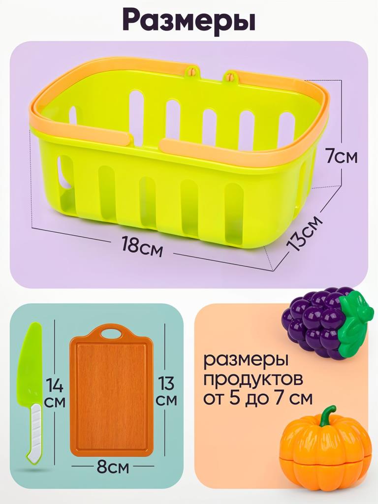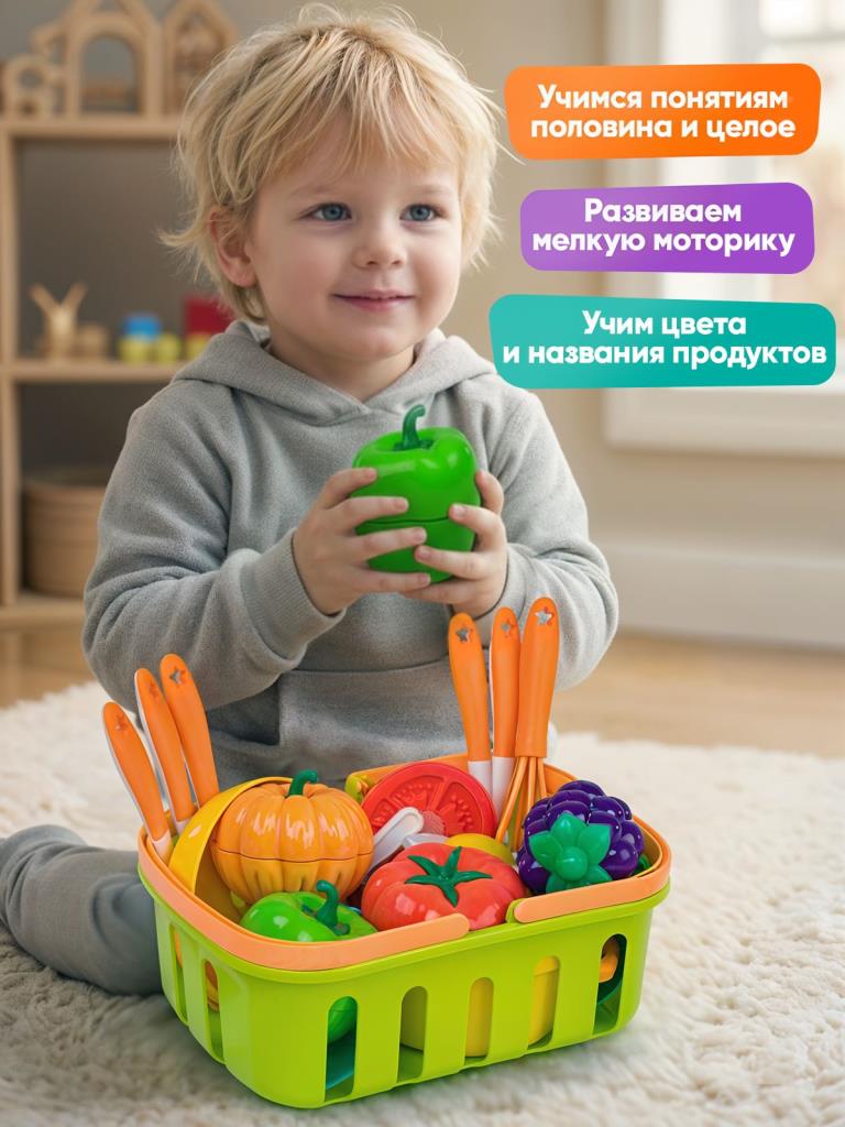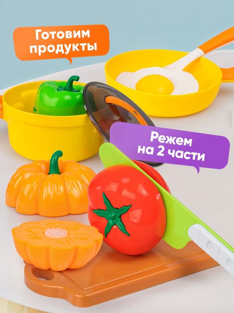Игровой набор UT / Игрушечные продукты овощи и фрукты на липучках с посудкой / Игрушечная еда, 22 предмета