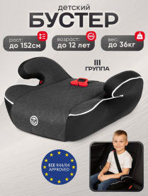 Бустер детский Подойдет для перевозки детей и подростков весовой категории 22-36 кг, возрастом от 6 до 12 лет, группа 3.