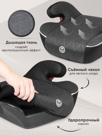 Съемный чехол авто-бустера выполнен из износостойкой, гипоаллергенной, качественной ткани, с вентиляционным эффектом.