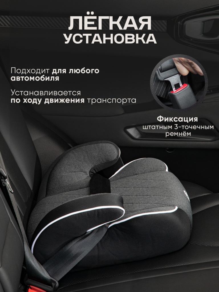 В машине автокресло-бустер устанавливается на переднее или заднее сиденье по ходу движения и фиксируется с помощью штатного 3-х точечного ремня безопасности.