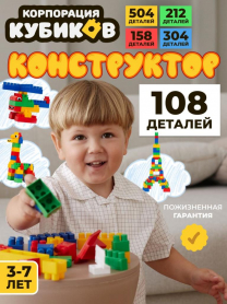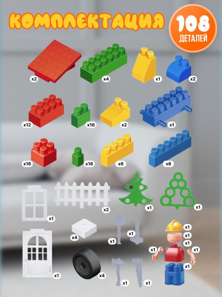 Конструктор детский крупный 108 деталей / Блочный конструктор большой, для малышей от 3 лет, для мальчиков и девочек