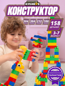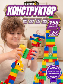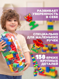 Конструктор детский крупный 158 деталей / Блочный конструктор для мальчиков и девочек, стартовый набор для малышей от 3 лет