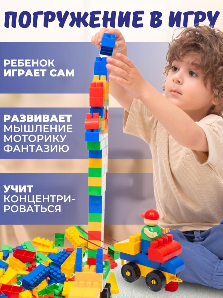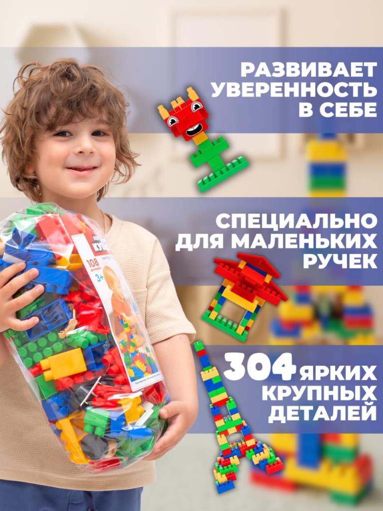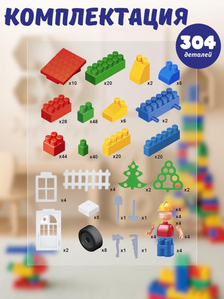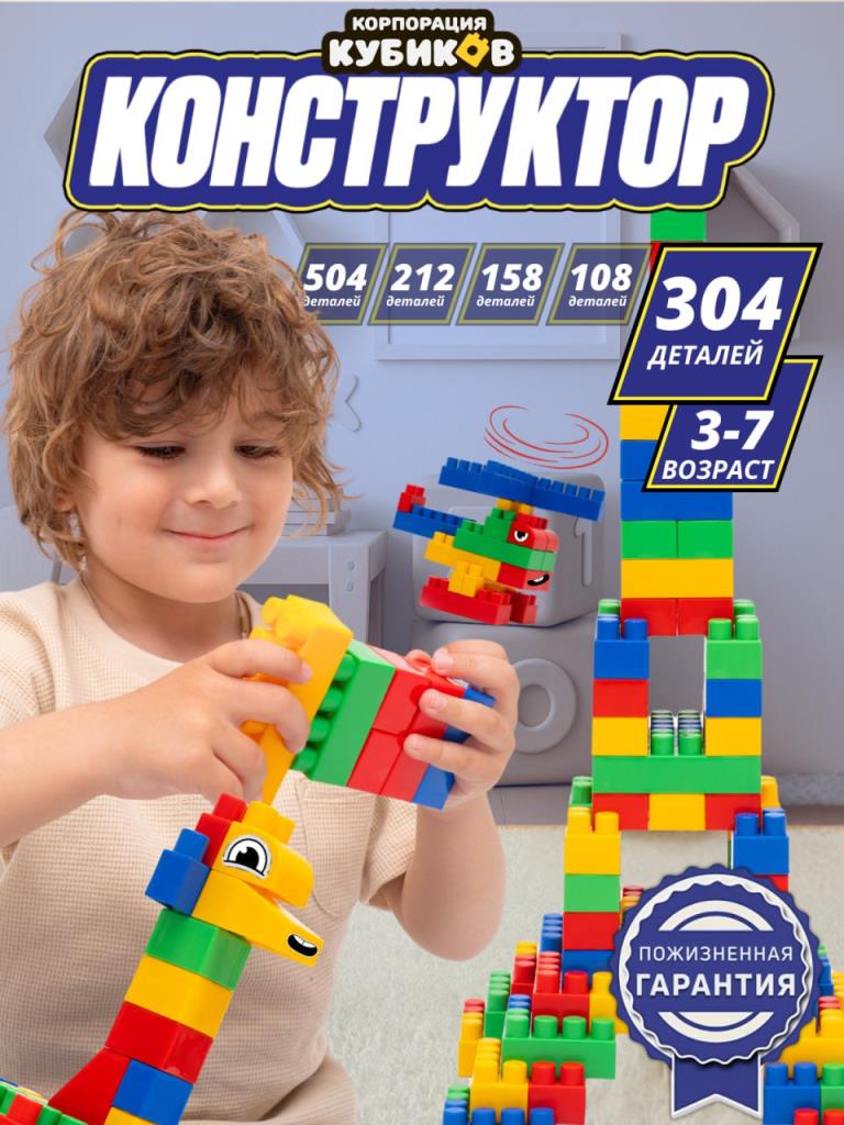Большой конструктор детский крупный 304 детали / Блочный конструктор для мальчиков и девочек, для малышей от 3 лет