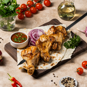 Сочный шашлычок из куриной голени, приготовленный на огне. Сочный, горячий. Беспроигрышный выбор.