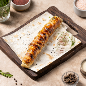 Состав: Люля-кебаб из свинины, тесто слоеное СОУС ПРИОБРЕТАЕТСЯ ОТДЕЛЬНО Вес: 180 гр.